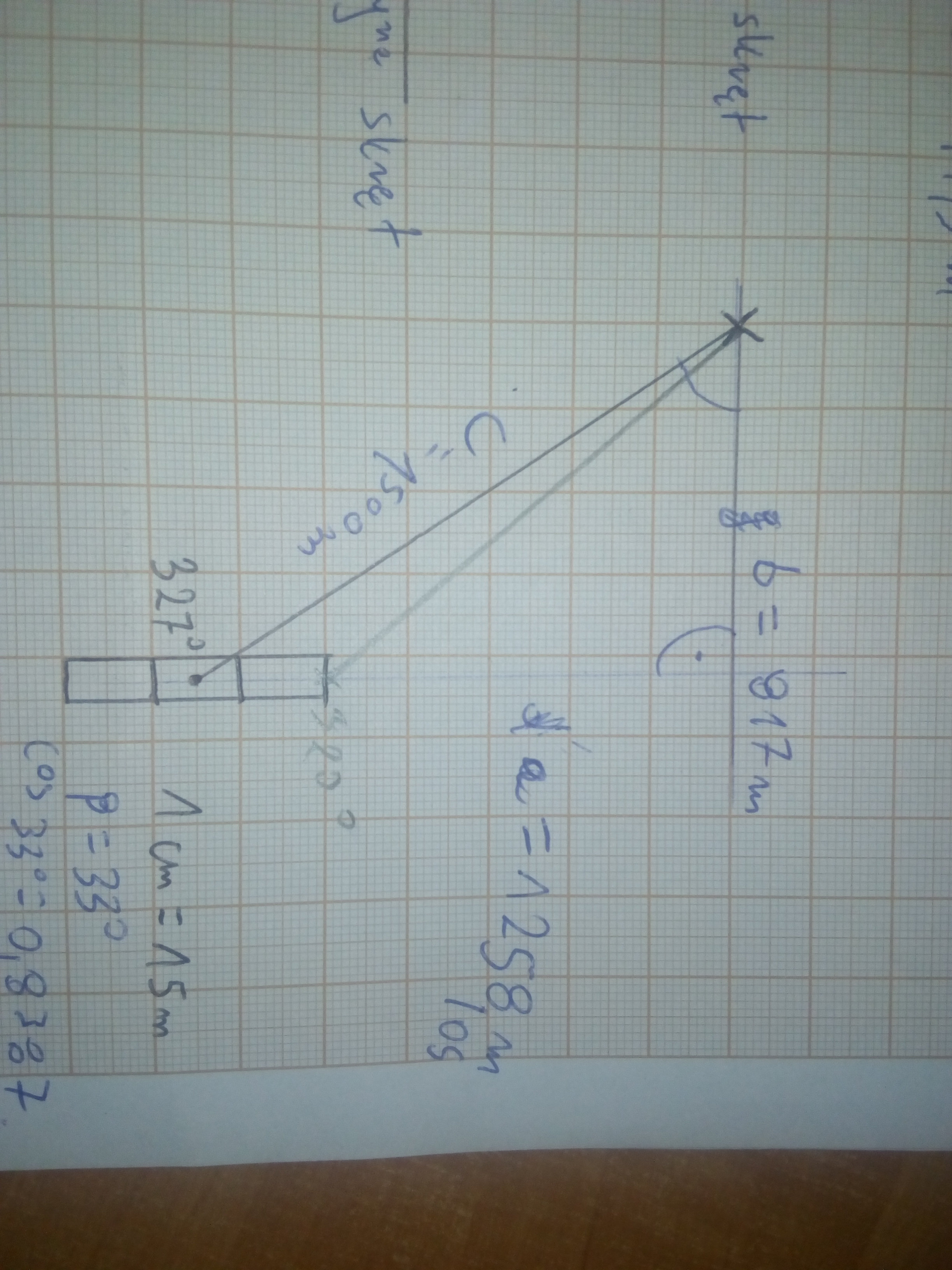 Ale teraz przeliczyłem wszystko przyjmując że c = 118,5m (na kartce c to dokładnie 7,9 cm)