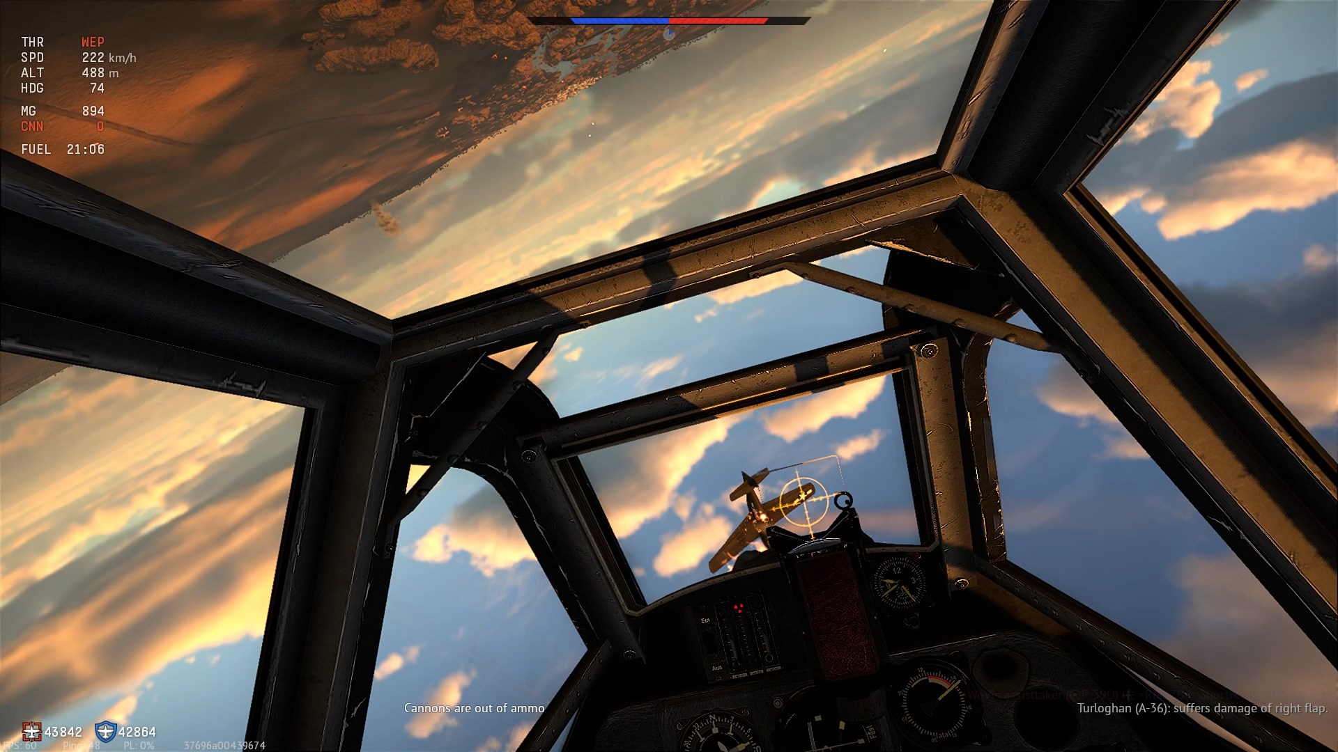 Przeciwnik rozbija się, mnie gra przydziela fraga - 10 sek. wstecz trafiłem go.