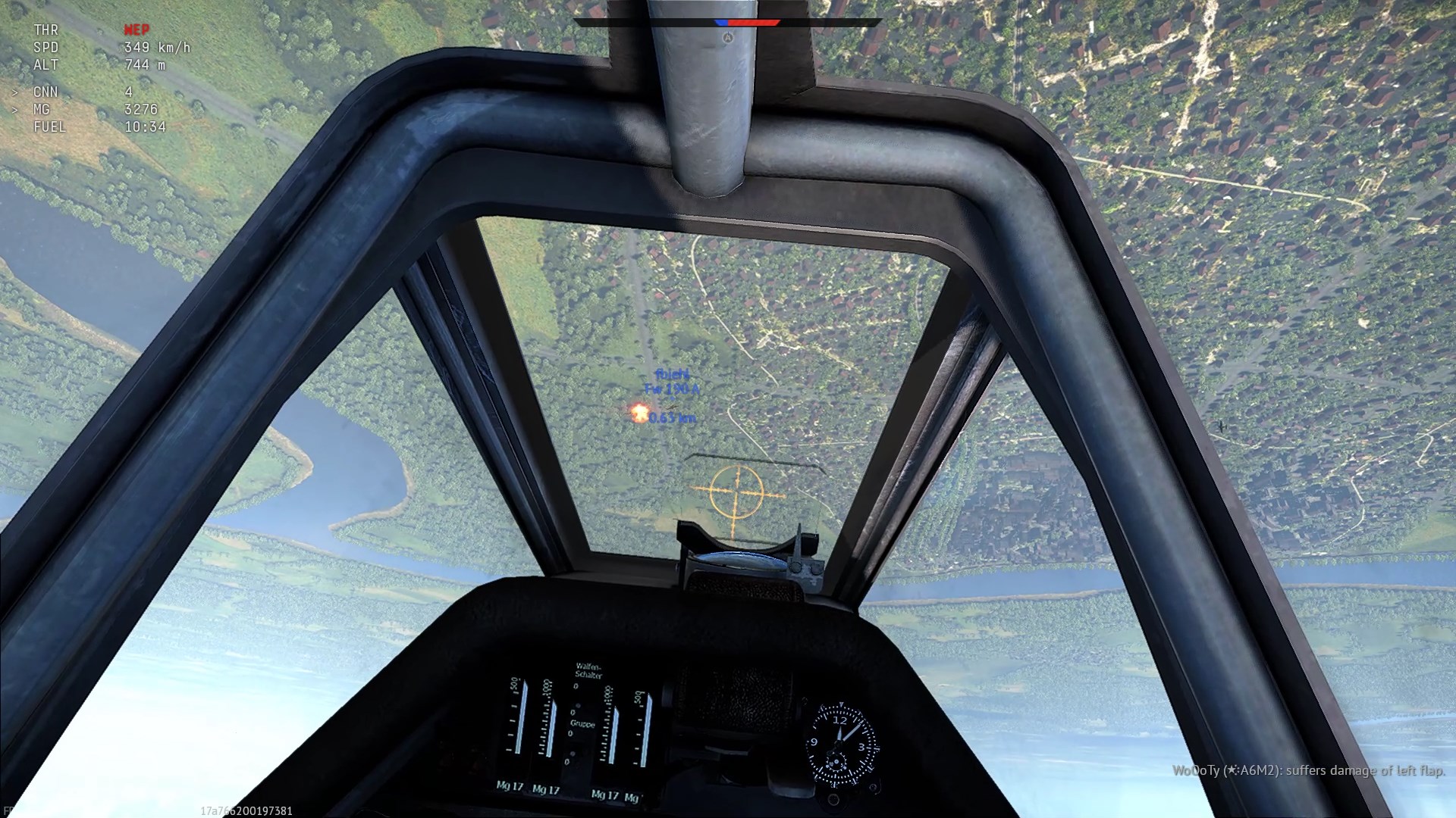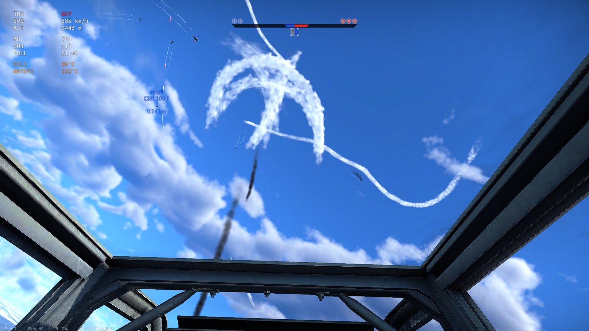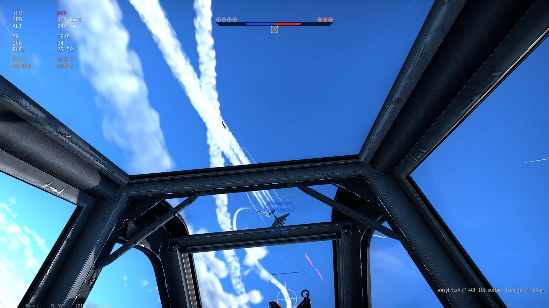 W drugim przypadku, po bolesnej nauczce nie odpuściłem wirującej Bf-ce, znalazłem ją nad samą glebą jak wiała w stronę własnej bazy. Goniłem przez przez pół mapy i dopadłem.