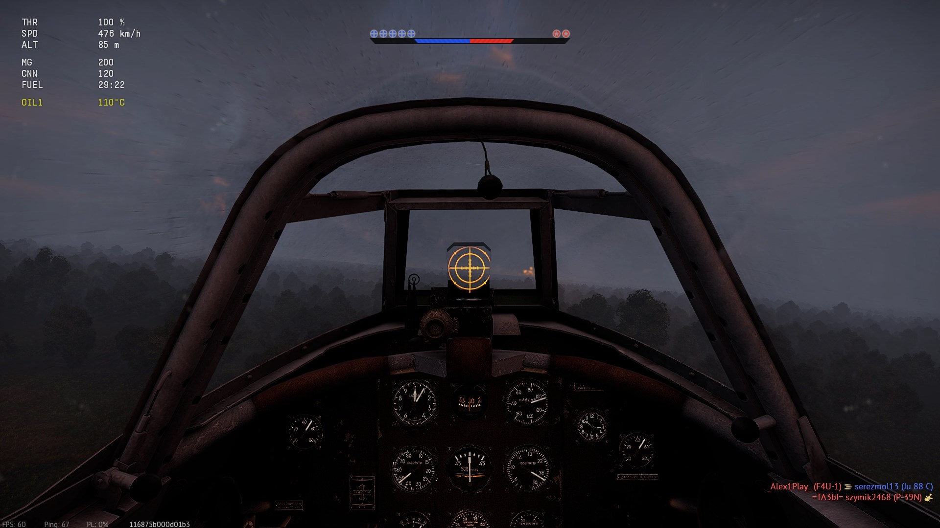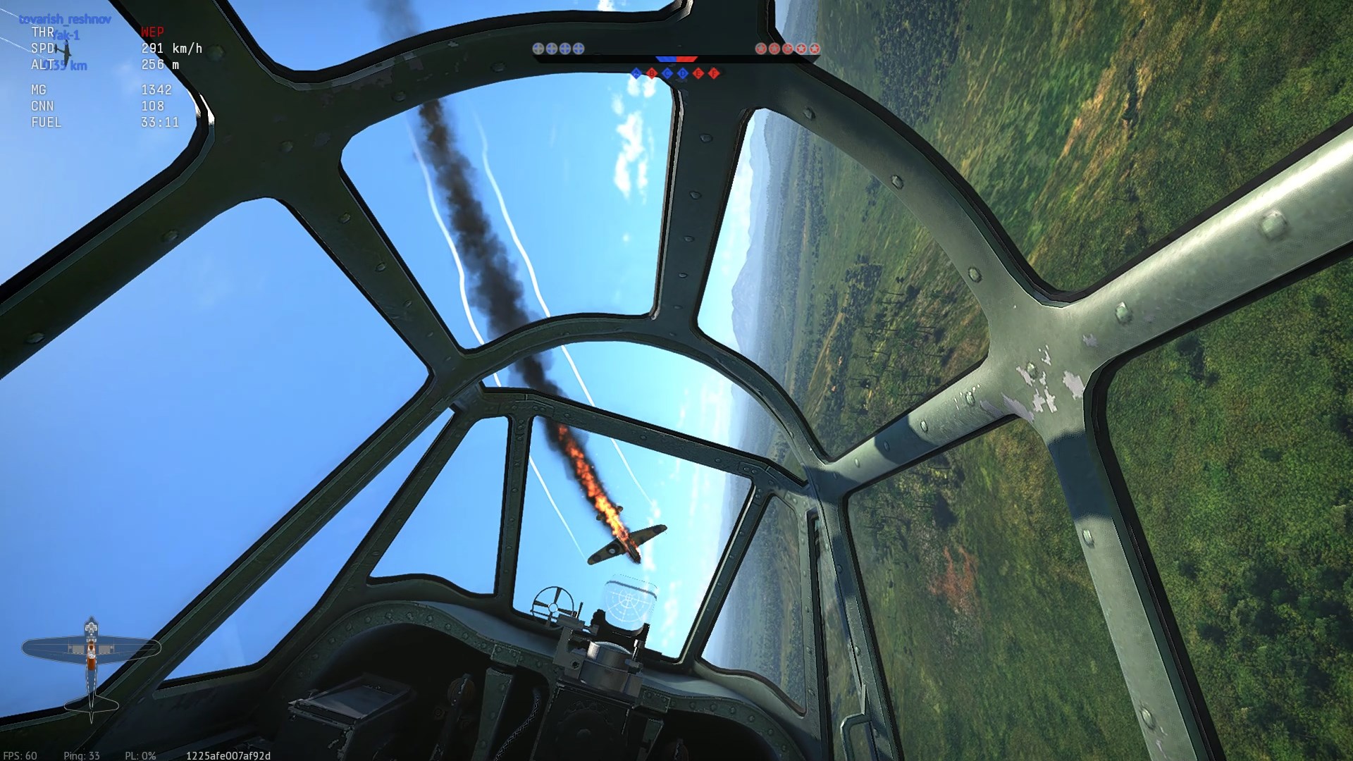 Zresztą, sytuacja podobna w filmie 1:33 tyle, że bez korka. Trafiam w miękkie podbrzusze gracza w premkowym US Ki-61 - krytyk. Odpuszczam, nie idę za nim licząc, że dokończy go któryś graczy mojej drużyny.