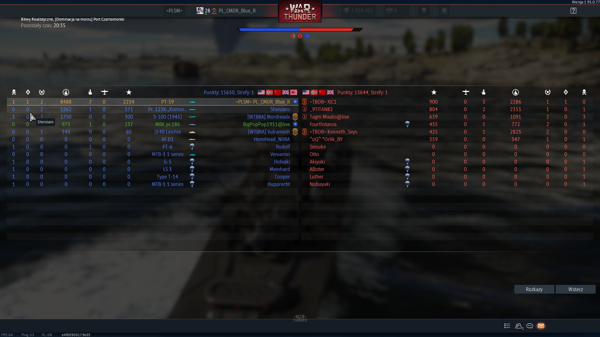 Zaczyna się gra, połowa graczy to Boty... oj, będzie mało samolotów... No i może być ciężko topić graczy, gdy okaże się, że same asy po drugiej zostaną... Płynę, zajmuję punkt, topię, uwijam się jak w ukropie... I czuje się, jakbym odwalał całą robotę drużyny! Po 10 minutach (i pierwszej śmierci) włączam statystyki... czy jestem w top 3?