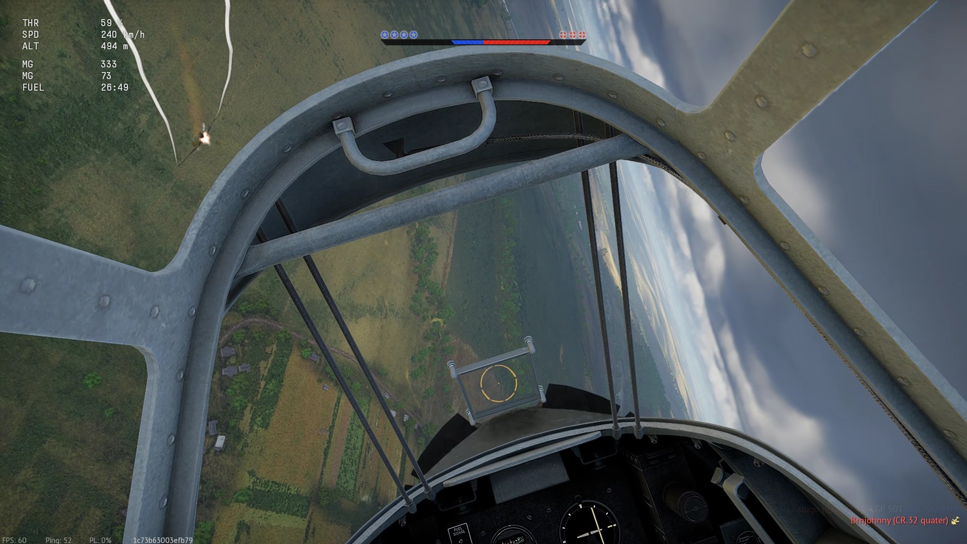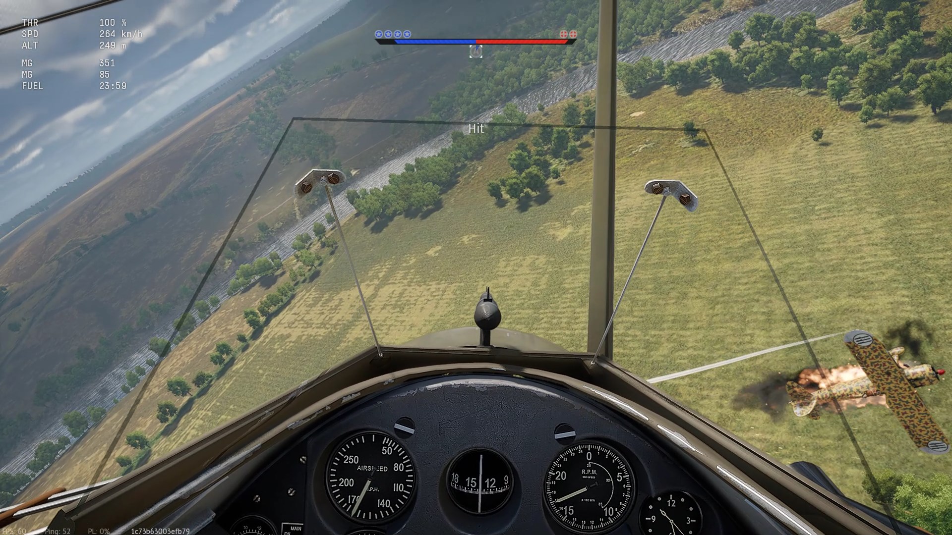 Kilka minut po tych akcjach, po wizycie na AF i przeładowaniu, sytuacja identyczna. Ale tym razem to ja popełniłem błąd w trakcie kopiowania jego manewrów obronnych (nożyce), pozwoliłem mu wyjść na H2H, spóźniłem się z oddaniem serii. Uszkodzoną "Kijanką" próbowałem uciec, ale dopadł mnie przed lotniskiem.