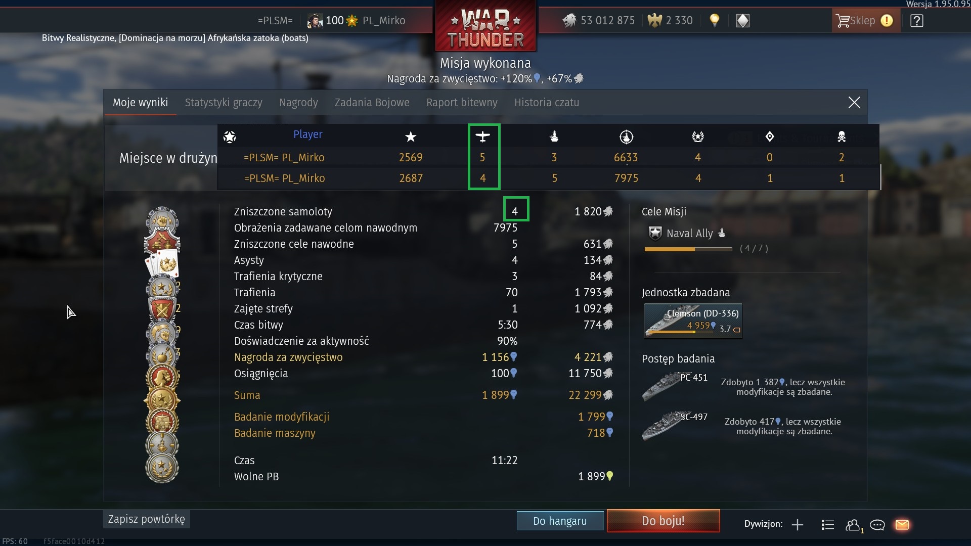Zrobiłem sobie kilka dni urlopu od WT, ale przed tym mój wieczór z WT wyglądał następująco: 1, 2 bitwy na EC SB Air i kilka potyczek kajakami.