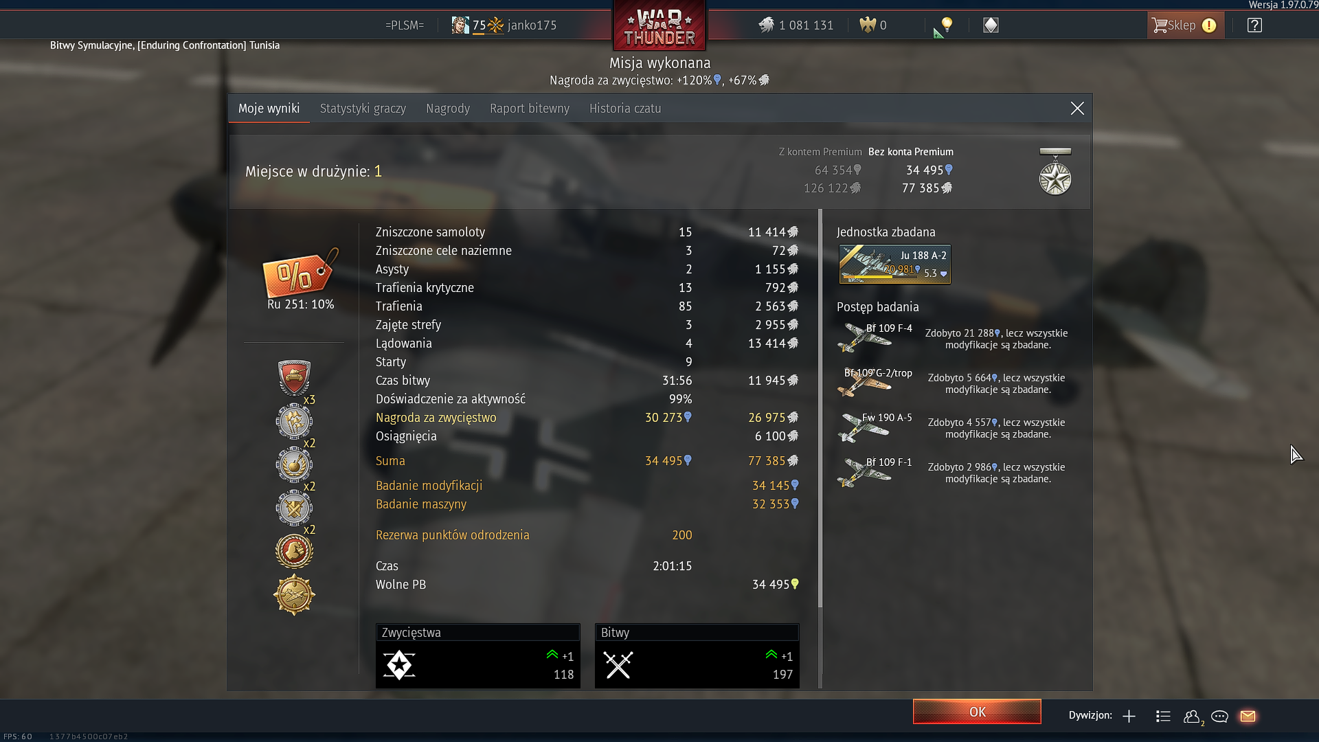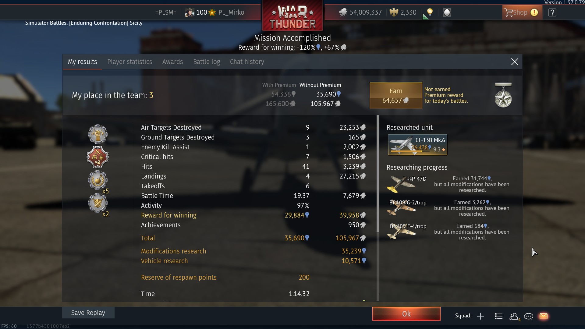 To i ja skorzystam z okazji - mój obecnie "najszybszy hat-trick" na SB Air - Bf 109 G-2 w ciągu 1 min i 40 sek. 3 zestrzelenia.