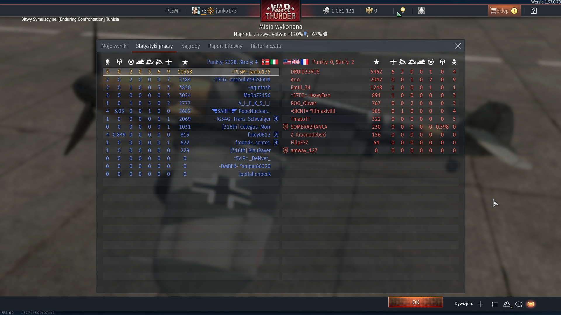 Zdanie zrobione... ale drużyna przegrywa... 3 wrogie punkty zajęte. Jednak, gdy Catalina spadała... wrogów zostało trochę mało... I psuć teraz PT-59? Niee.... Ale drużyna tak na mnie liczy... Kurka wodna, może opłaci się. Ciężki wybór... Wróg ma przewagę...