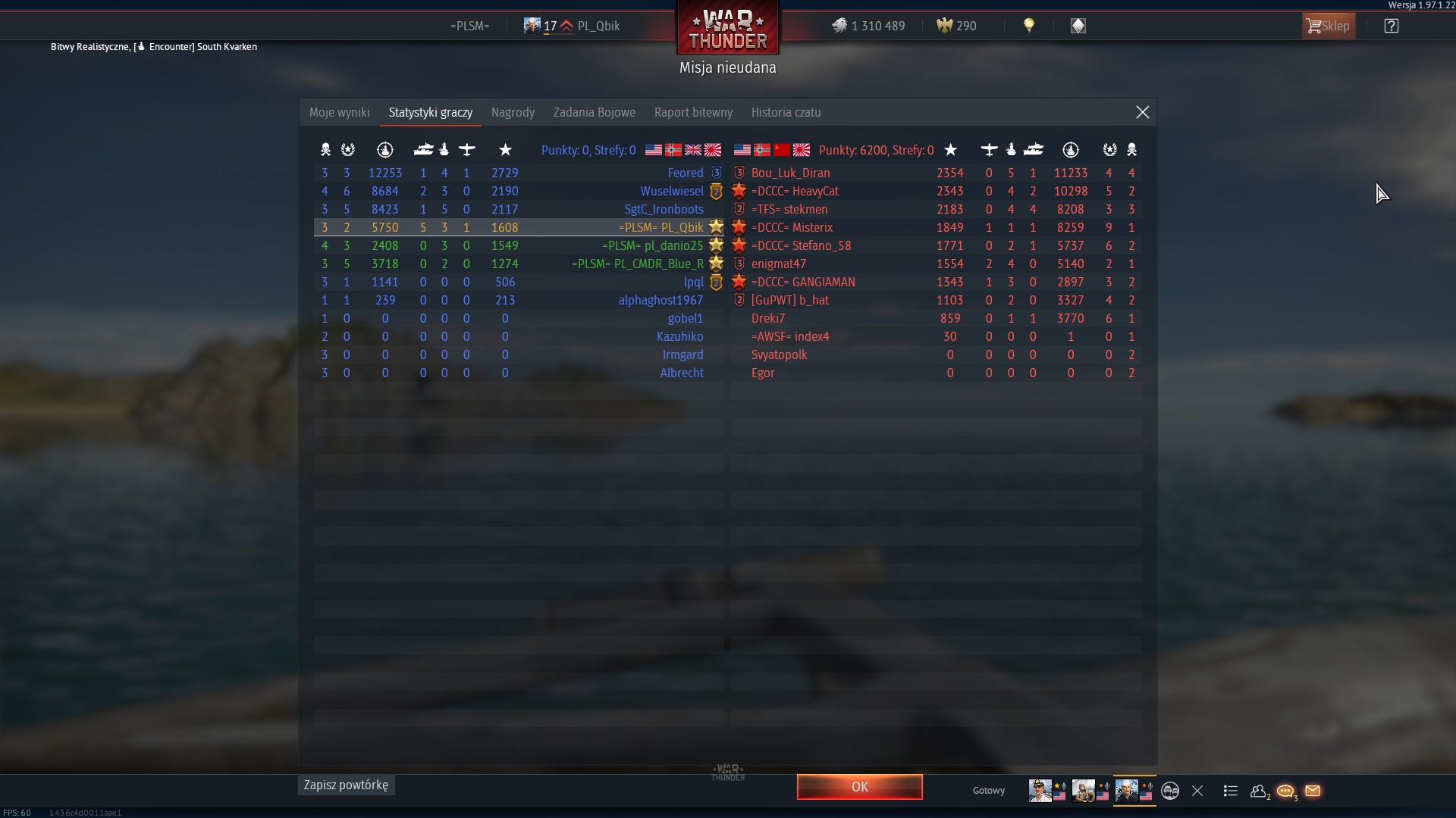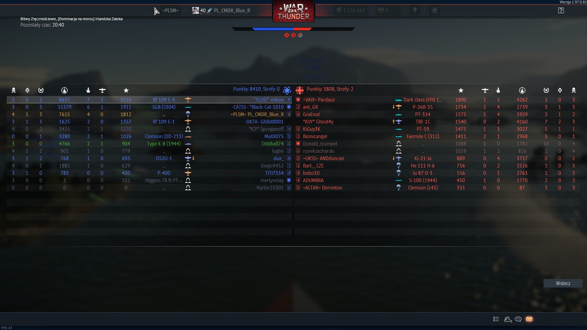 Gratulacje Mirko . Z taką ekipą to naprawdę świetny wynik . U mnie nie było żadnych kilerów ,a w drużynie przeciwnej był tylko jeden naprawdę dobry gracz ,który pięknie manewrował spitem V . Aż miło było popatrzeć . Tylko raz udało mi się go uziemić i to tylko dzięki temu ,że kręcił się z dwoma bfami ,a jak czekałem cierpliwie swoim zwyczajem