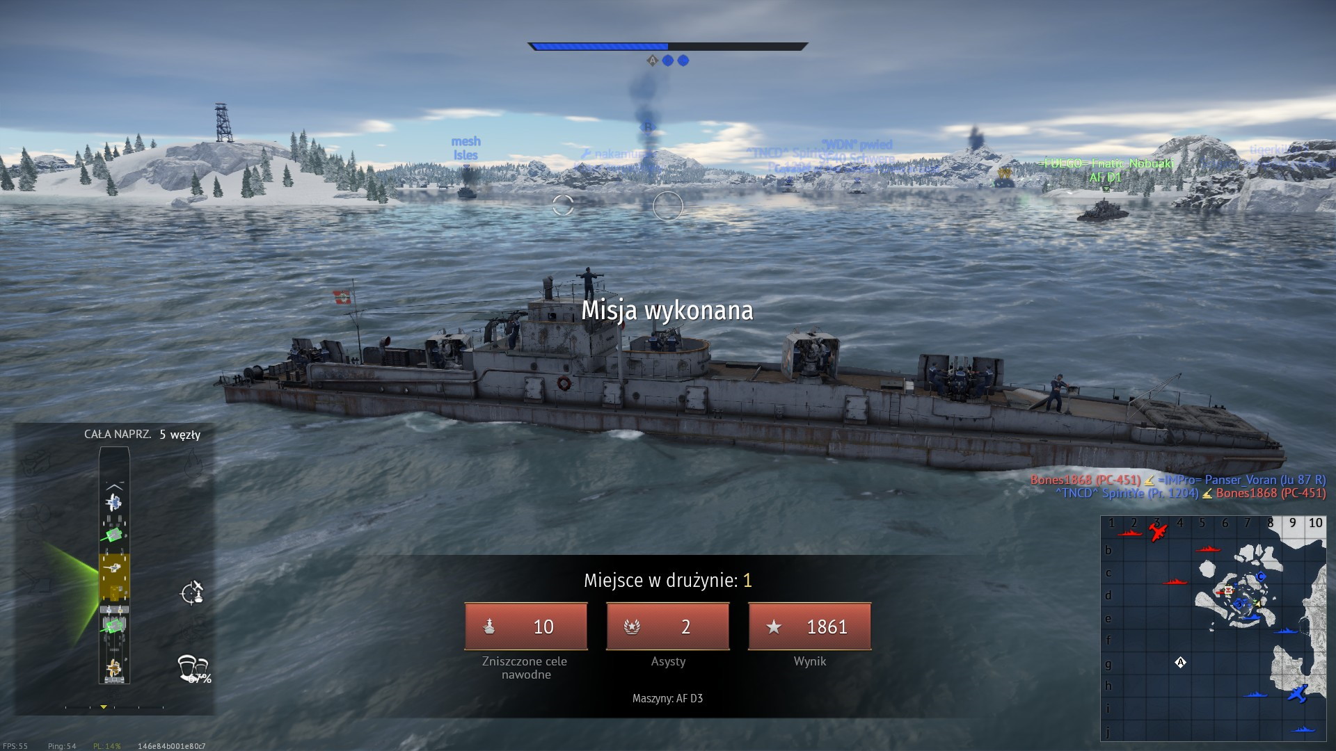 Więc gra mając 8 graczy powyżej 3.0, drużynę 4.0 (nas) wzięla do jednej strony, graczy 3.7 więcej do drugiej. Tylko my mieliśmy szczęście, że nam jednego gracza z DD wyrzuciło... Choć patrząc na to, że poza nami wróg wymiatał wszystkich (sporo było graczy z okrętami 1.0-2.0 oraz... szarą gąską 3.0)... To kłopotem okazali się dla drugiej storni gracze z wysokim BR, ale bez niszczycieli.. Evo. Swoim LCS wymiótł nieźle.. 6 naszych zabił... Tylko potem nie miał możliwości poradzenia sobie z niszczycielami... Choć wrogie lotnictwo dwa z nasze niszczyciele zatopiły z drugiej strony...