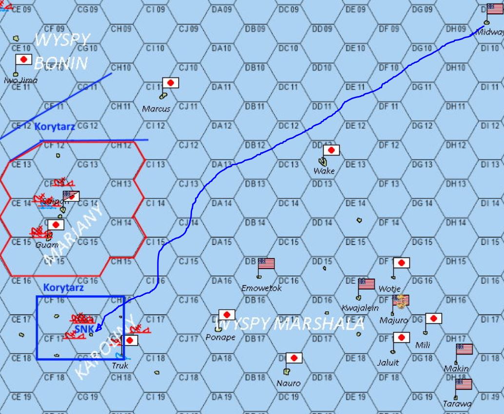 Znowu pod Truk, mamy mniejszy rejon ale też celów będzie prawdopodobnie mniej. Zobaczymy. Najbardziej mnie irytują ostatnie zalecenia dowództwa o zmianie priorytetów dla naszych torped. Wyobraź sobie, że atakując konwój, naszym głównym celem są niszczyciele.