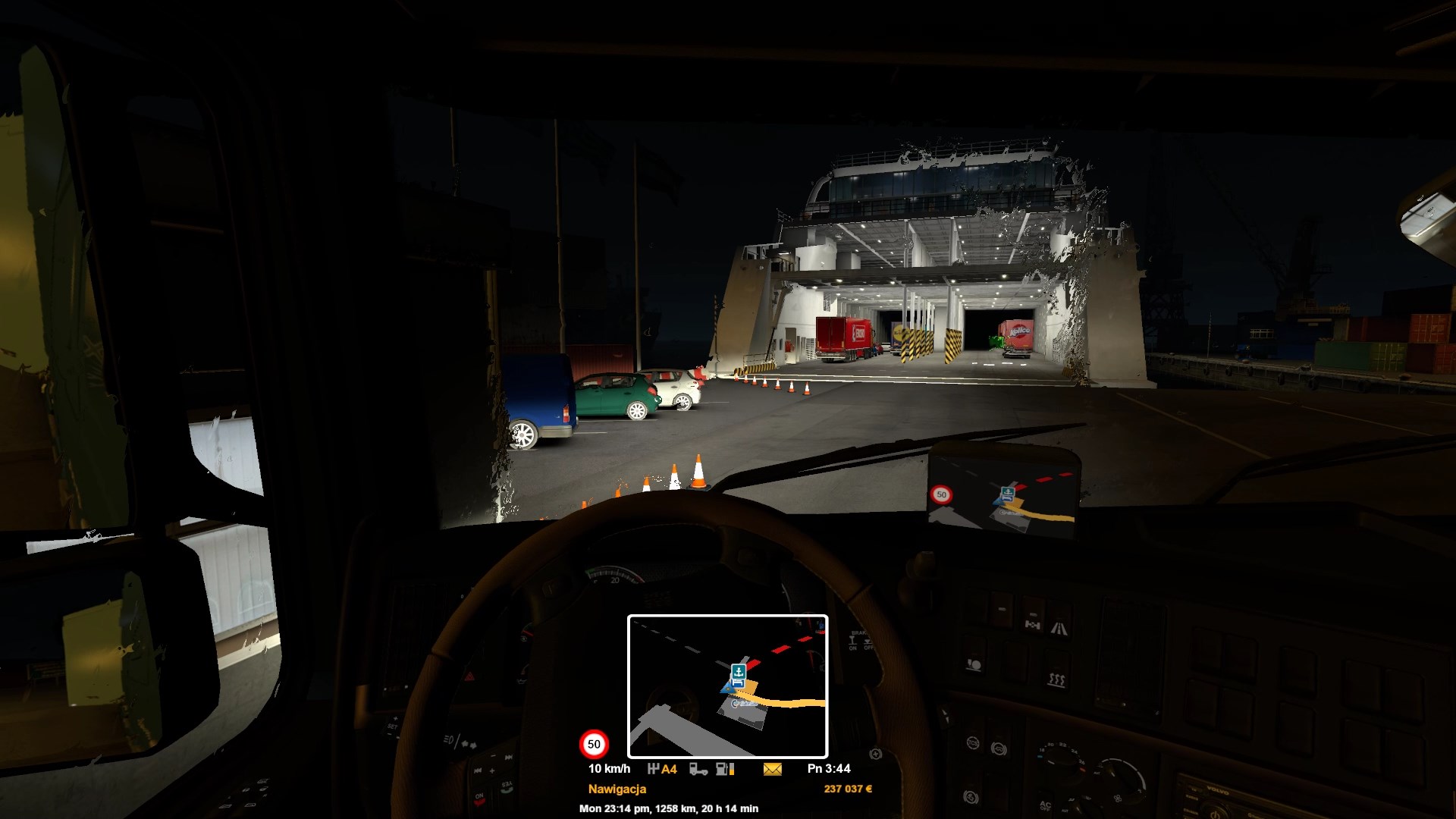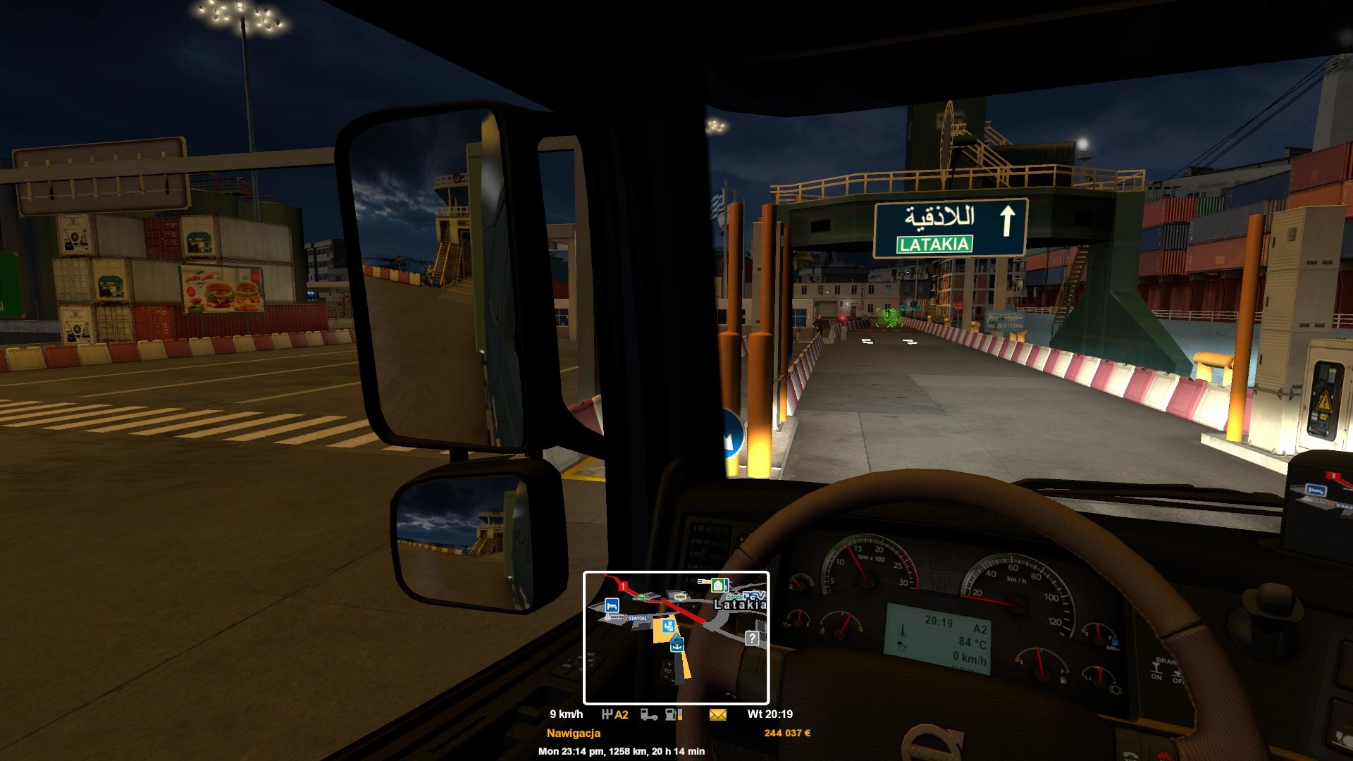 GPS uporczywie kieruje mnie do przystani promowej, w bezpieczną i łatwą trasę (dwie długie przeprawy promowe) prowadzącą przez Cypr. Nie po to instalowałem ProMods Middle-East Add-on... Wybieram kierunek Bejrut (Liban) - "Ale tam mieliśmy... Nieważne, znajdę nową trasę".