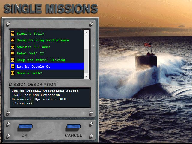 Tutorial, może jakaś misja na początek... O! Podrzucenie SEALs! Odpalam i... eeee.... 688(I)H/K było lepsze...