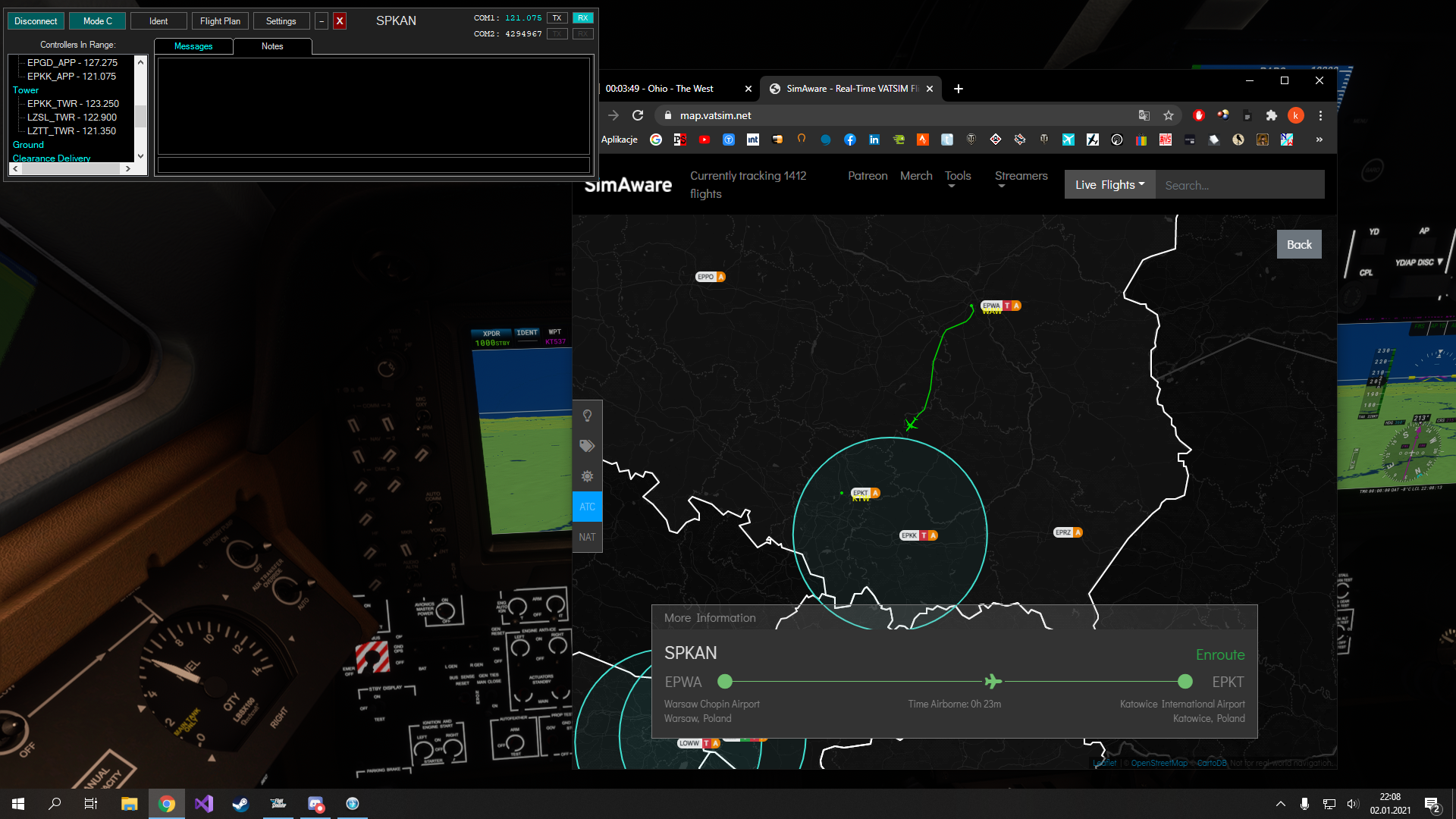 Trasa EPWA EPKT Vatsim. Oblodzenie