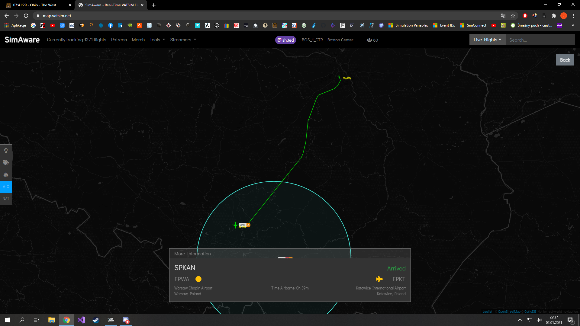 Gdy byłem w pewnej odległości od Katowic już pod kontrolą EPKK_Tower usłyszałem, że dwa samoloty, Cessna 172, pewno dwóch znajomych robiło lot Balice EPKK Pyrzowice EPKT. Zgaduję, że lot zapoznawczy z Vatsim. Wylądowałem przed nimi, potem obserwowałem jak jeden kołował, a drugi gdzieś zniknął jak EPKK_Tower skończył... A szkoda, zrobiłbym screeny jak ląduje :D
