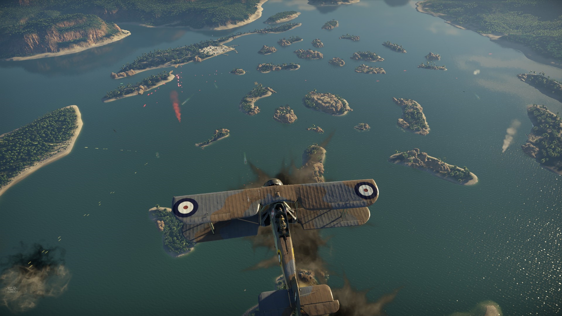 ... i ogień zgasł, a gracz próbował ratować się nurkując - brak oznak uszkodzeń. Wreszcie celna seria, odcięty ogon i bum.