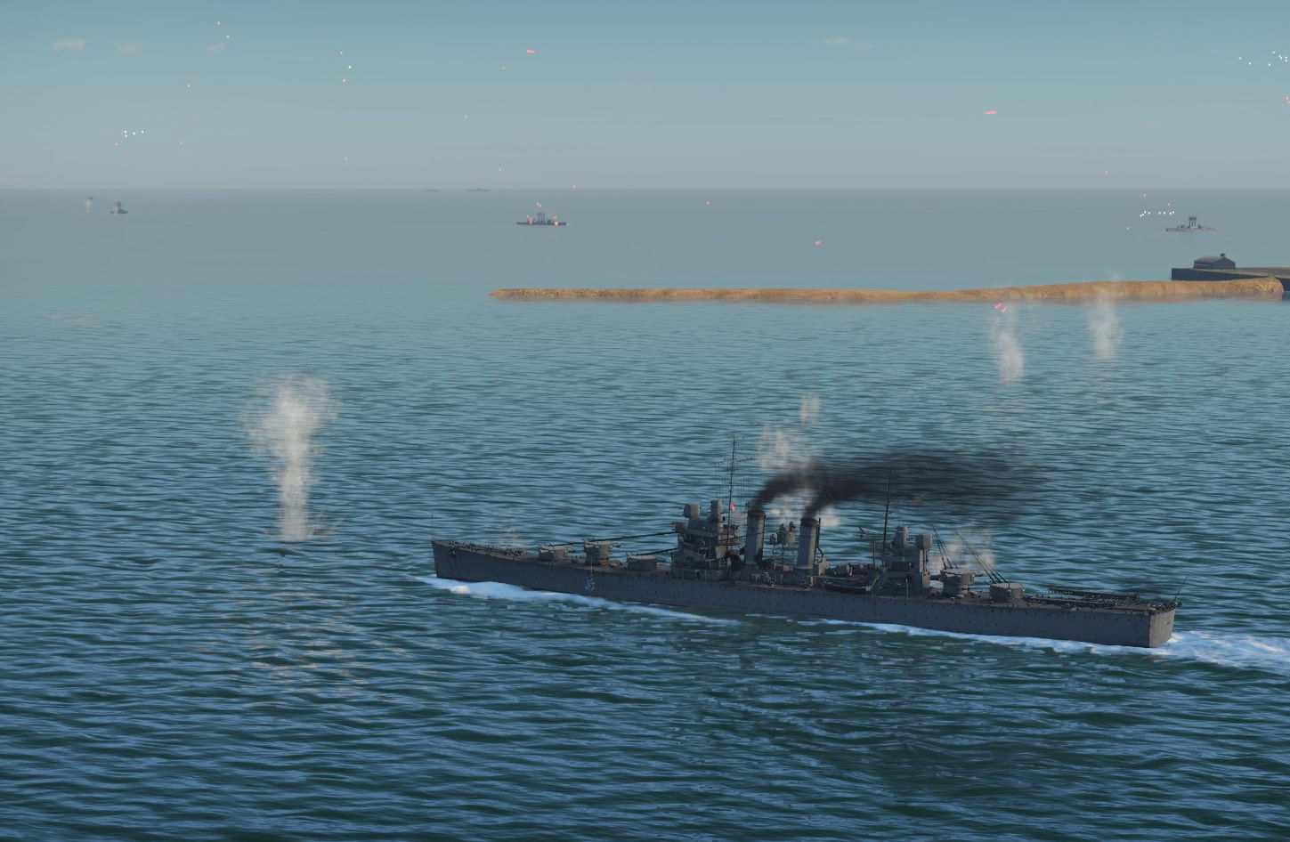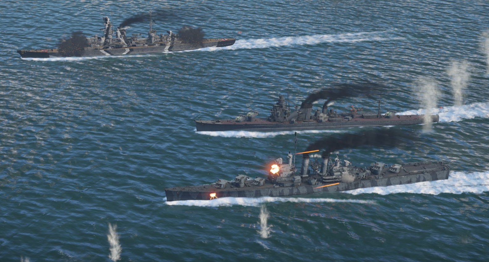 Jeden Japoński okręt, pod banderą niebieskich, przeprowadzał atak torpedowy...