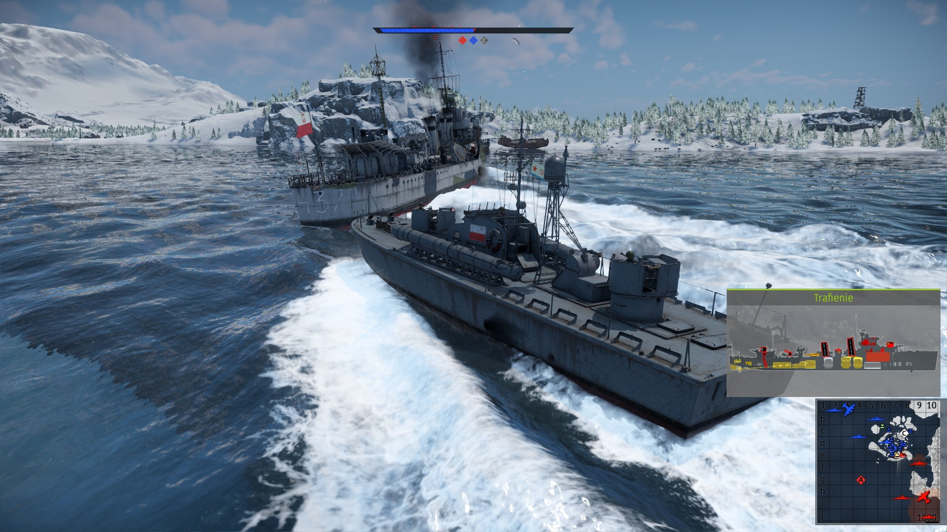 Jednocześnie strzelając się z kutrem, odpaliłem torpedy.... Ale wróg dostrzegł mój manewr...