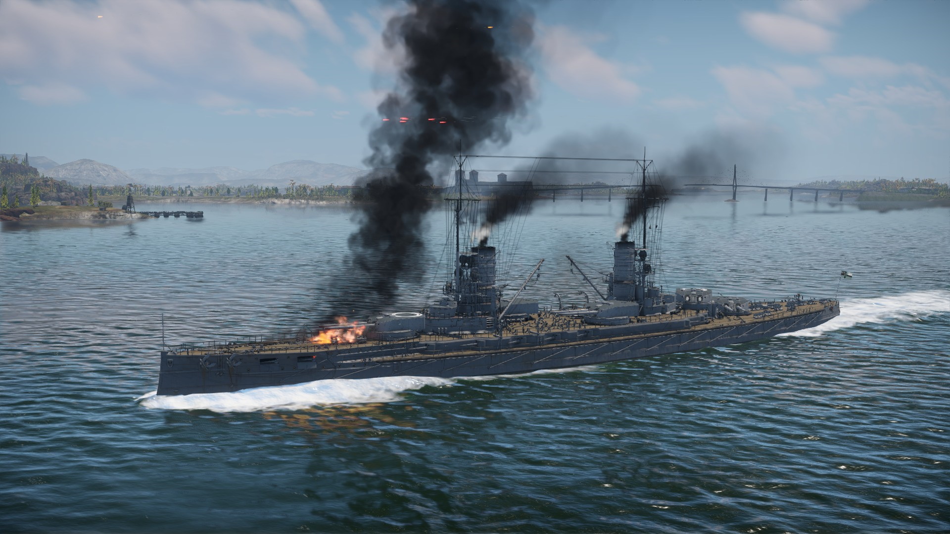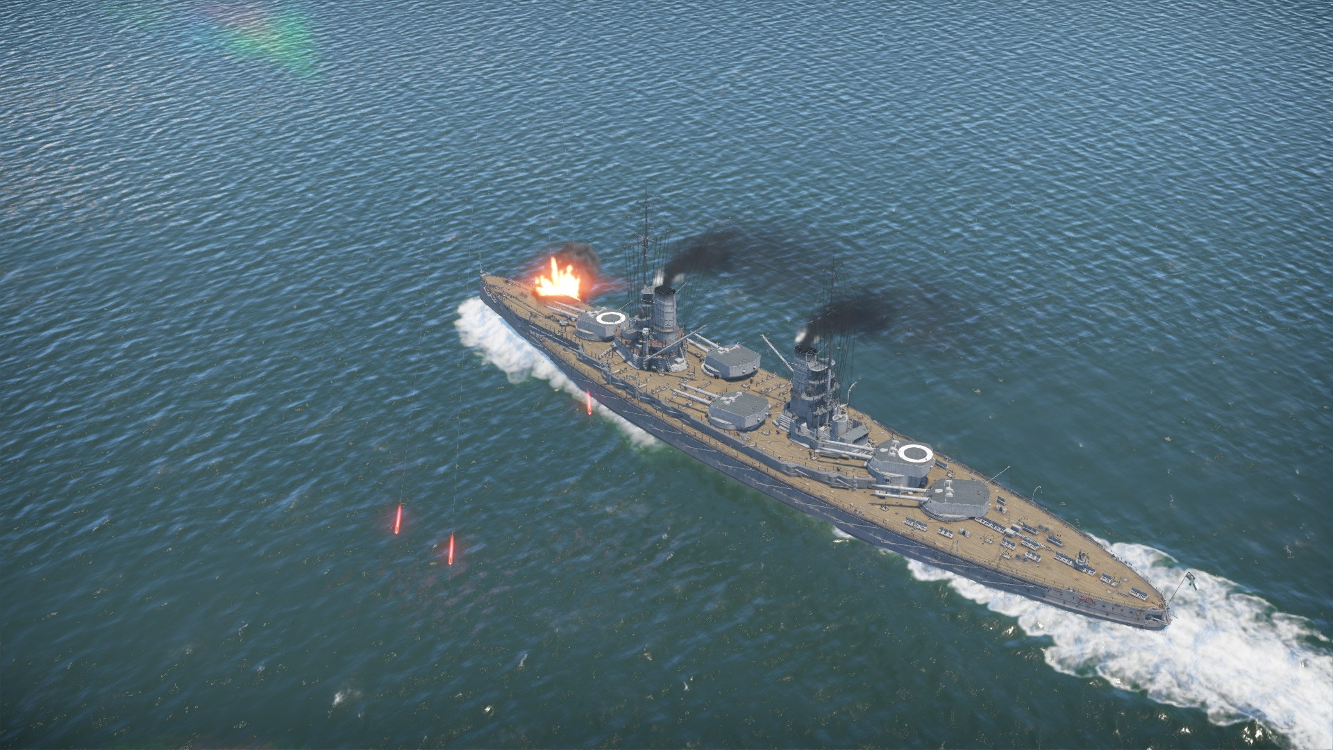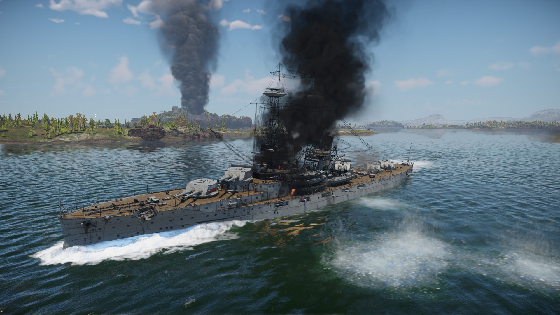 Który w szybkim czasie ogarnął cały okręt... Wrogi pancernik nie oddał ku nam żadnego strzału. Musieliśmy wysadzić amunicję, której eksplozja podpaliła cały okręt... Pierwszy łup naszych głównych dział!