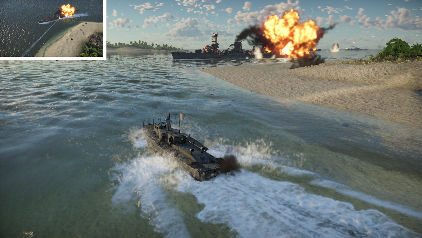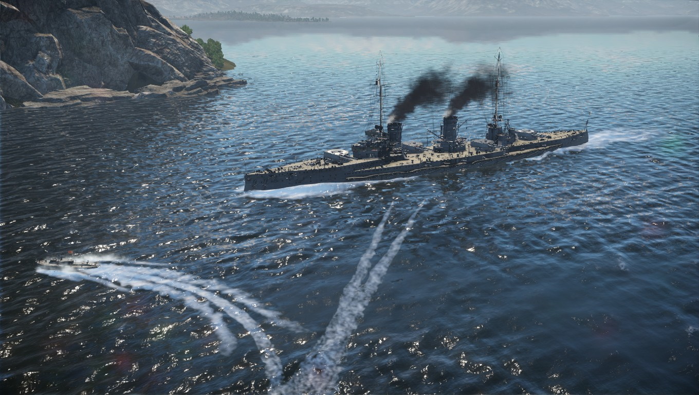 Wpłynęli na punkt pod ostrzałem wroga, ale to była dobra decyzja. Wrogi krążownik ruszył przed siebie, aby pokonać mały, denerwujący okręcik.