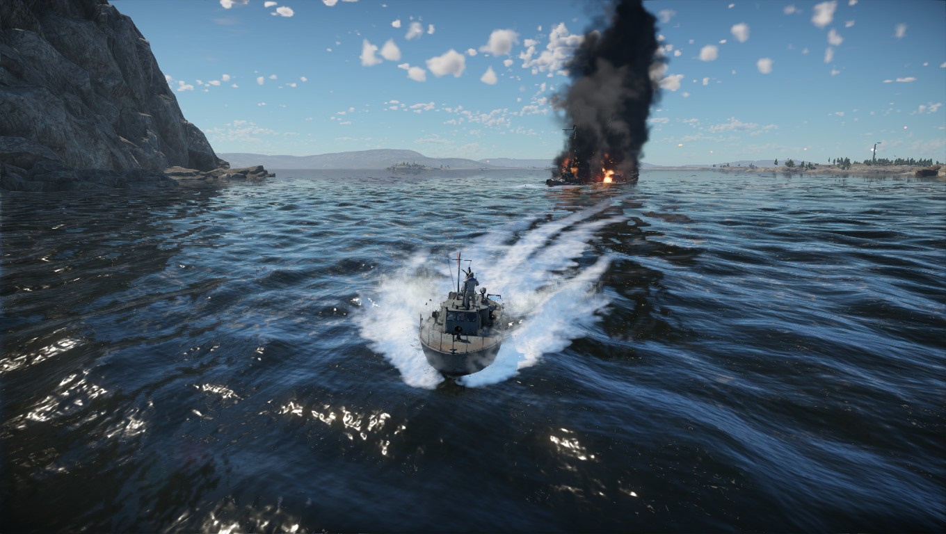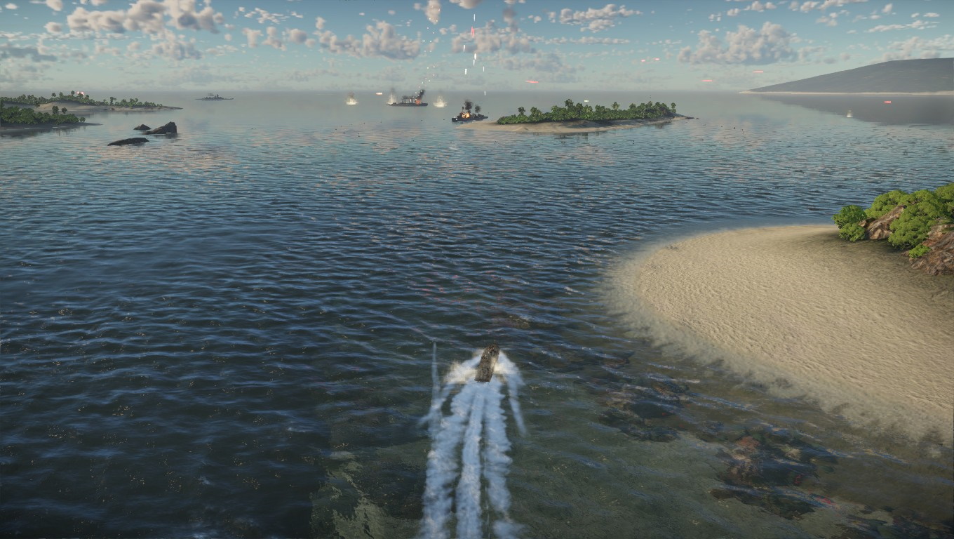 Oglądając za sobą efekt trafienia, gdy torpeda wysadziła wrogą amunicję