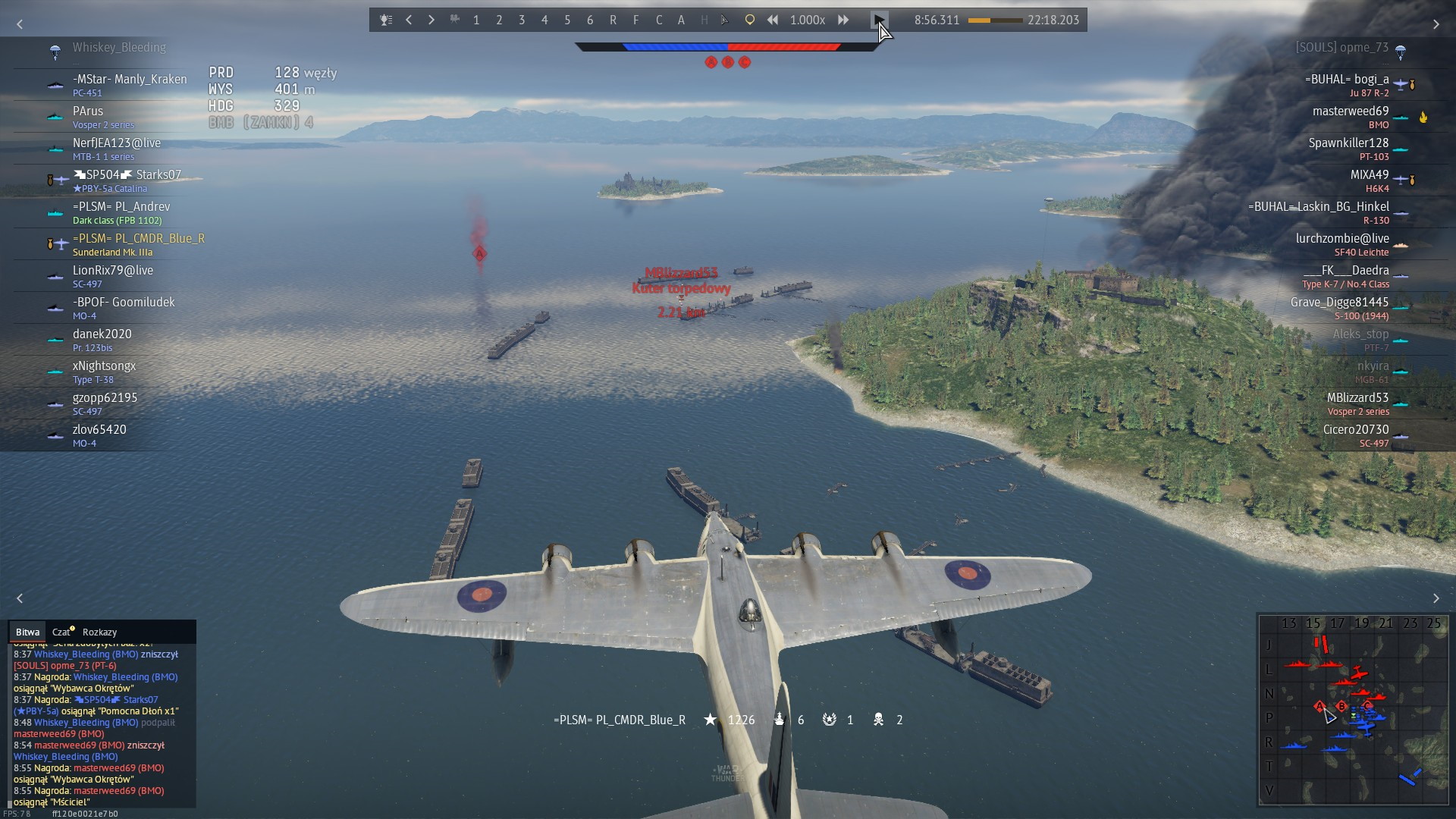 Tym razem zrzucił także i bombę, ale nie pomogło to Czerwonym. Zwiad dotarł do bezpiecznego schronienia, jednak Sunderland nie był w stanie wystartować pod ogniem...