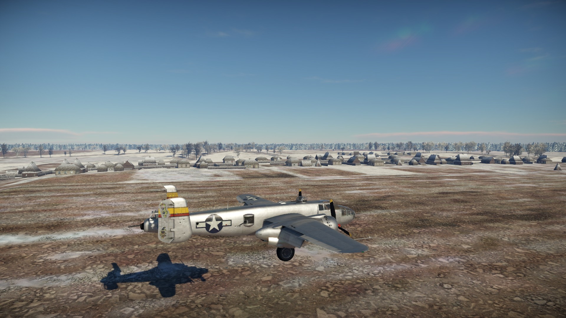 Leciałem samotnym B-25 nad wykryty obóz wroga, eskorta została gdzieś z tyłu, tocząc zacięte pojedynki, gdy dwa czerwone myśliwce rozpoczęły atak.