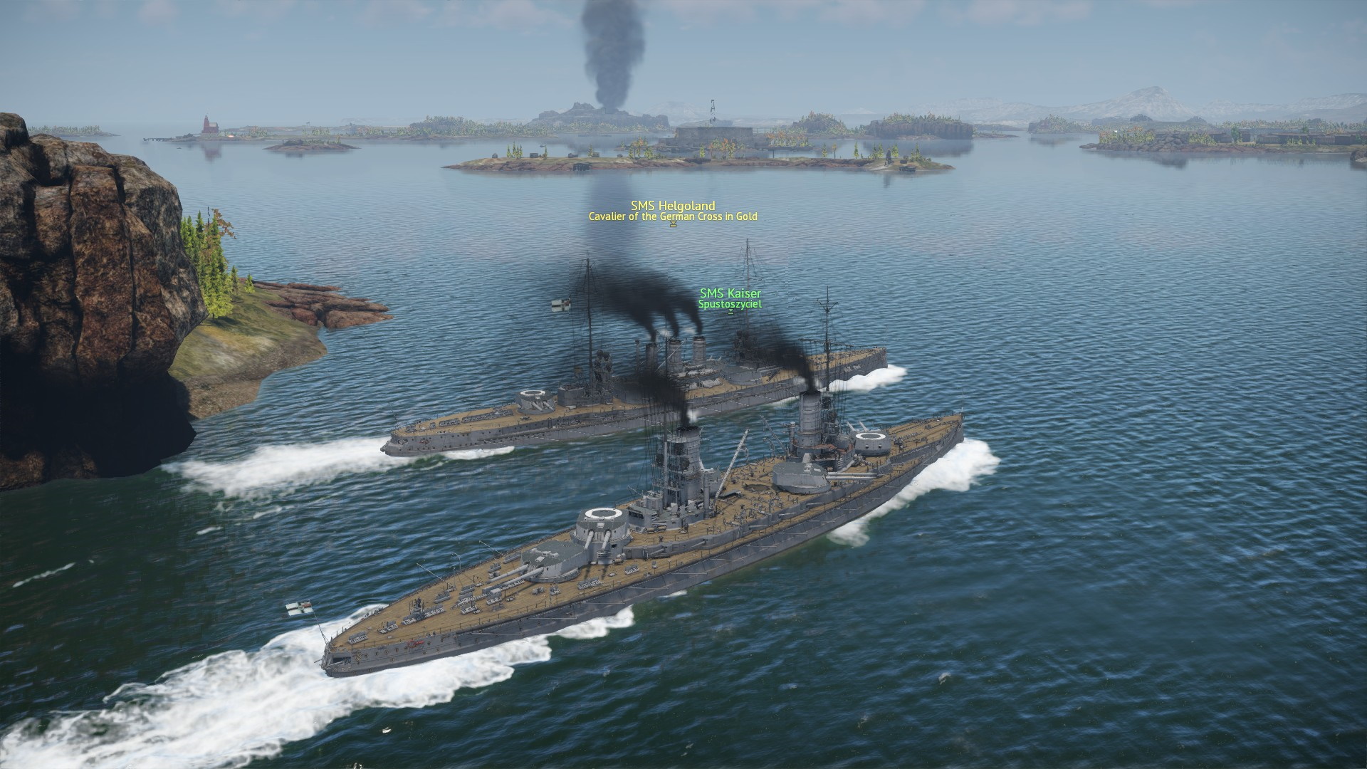 Po wycofaniu się za wyspę i schronieniu przed wrogim pancernikiem, zorientowaliśmy się, że po drugiej burcie mamy wroga, który podobnie jak my, wbijał się klinem w pozycje wroga...