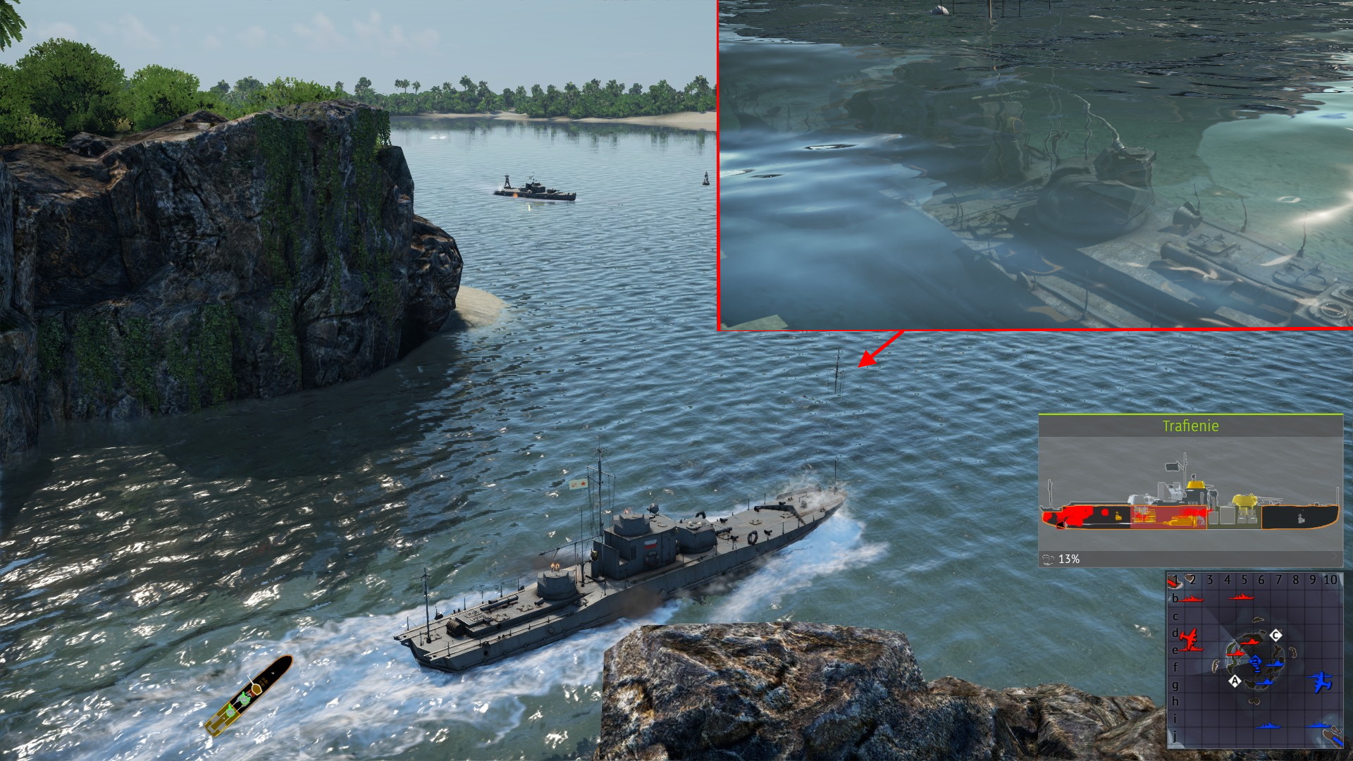 Niestety, gdy tylko wyszedł zza skał i zobaczył nie jednego, a dwóch wrogów, wiedział, że nie będzie dobrze. Choć porządnie uszkodził jednego, to jednak kuter Maxa został posłany na dno.