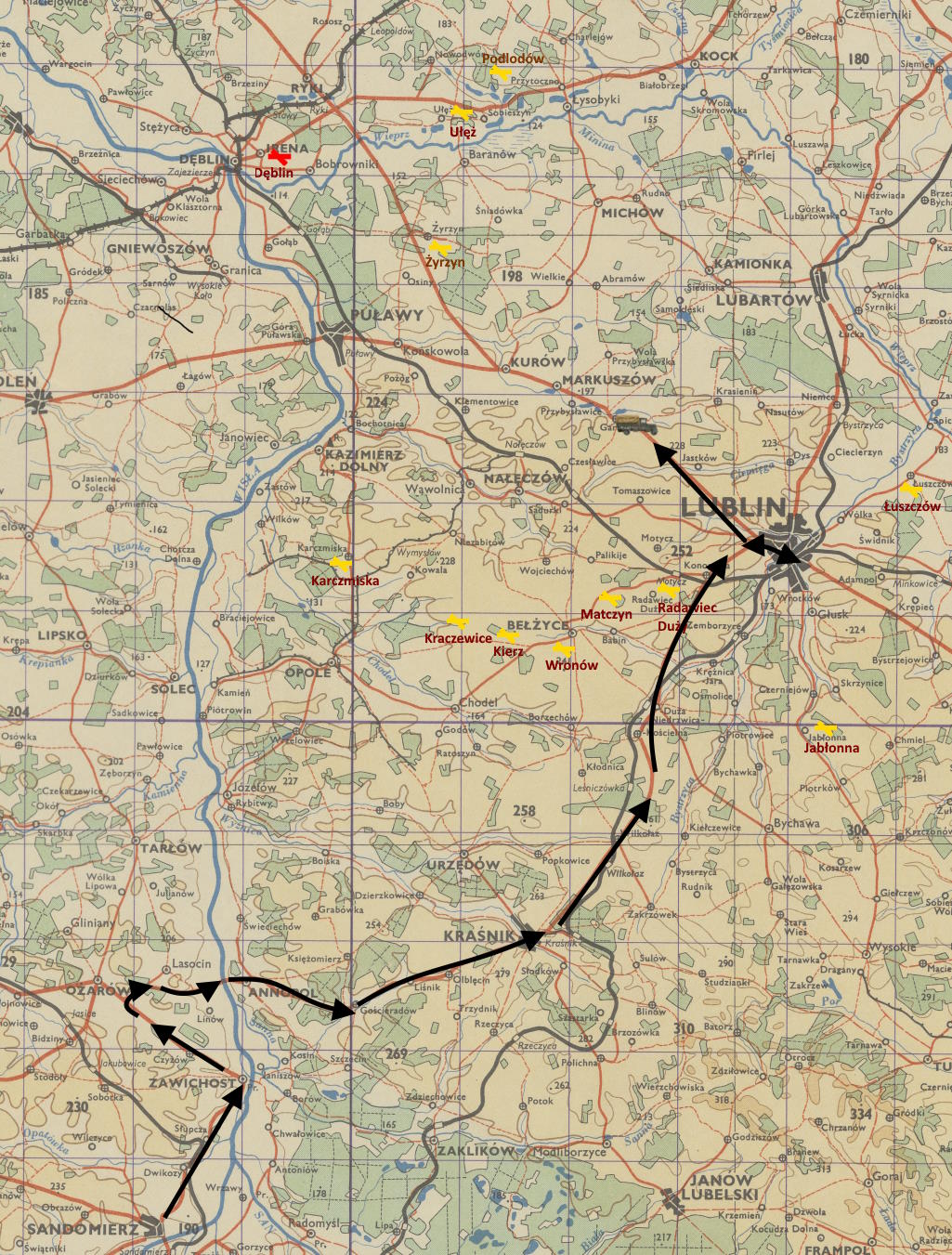 Gdy uzupełniono paliwo Tomasz uzyskał jeszcze potwierdzenie, że baza lotnicza numer 2 zostaje tu w Lublinie, a eskadra jest wciąż w Podlodowie, co rzucało trochę światła na sytuację. No kanapki, które dostali na drogę oraz uzupełnienie manierek było ciepło przyjęte. Znów wyruszyli w drugą stronę Lublina, opuszczając miasto naprzeciw zmierzających w kierunku miasta tłumów uchodźców.