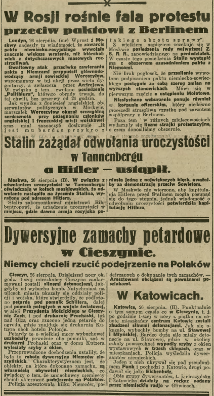 Prasa mocno zachwycała się Anglikami, za to w Gdańsku było goręcej, niż na Śląsku. Jakby tam Hitlerowcy dawali pokaz tego, co chcą poprowadzić na całej granicy.