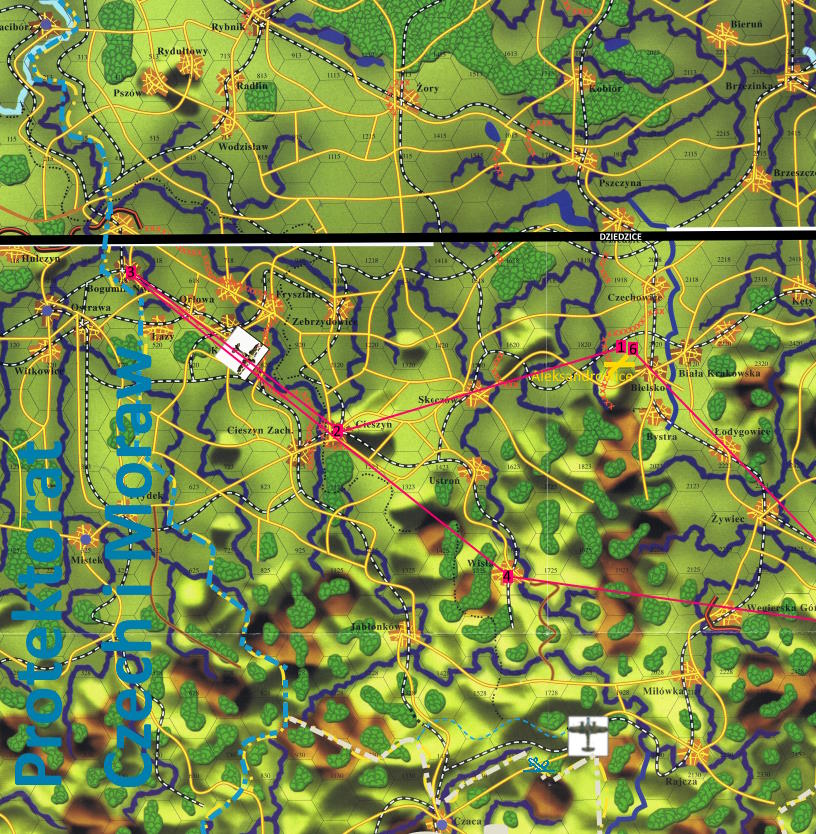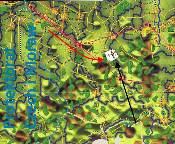 -Intruz i ścigający kierują się nad Cieszyn. Intruz dalej kieruje się ku granicy.