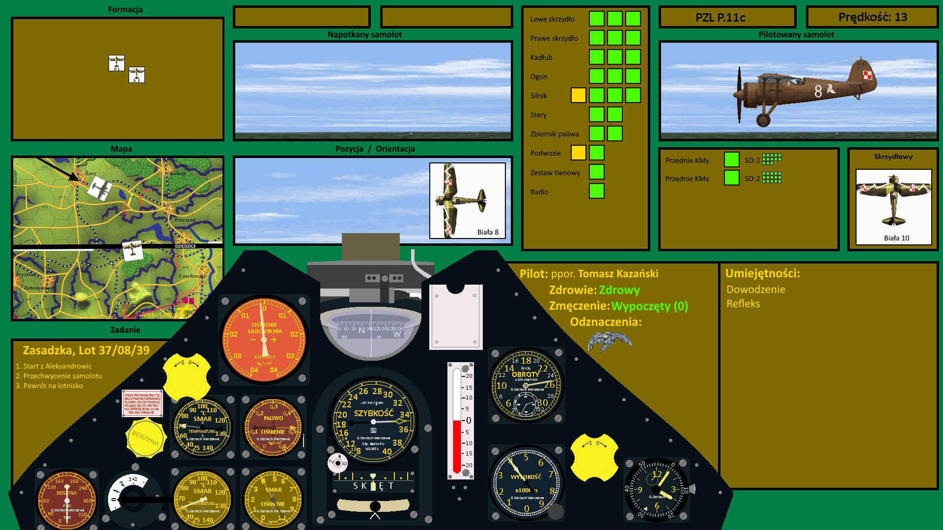 Tomasz wskoczył do Białej 8, a ku zadowoleniu Kocura, z Białej 10 odłączono właśnie pompy i choć wciąż była obok beczek, mechanicy pomagali Kriegerowi na start. Wystartowali zaraz razem, kierując się ku Rybnikowi. Intruz jakby chciał być przechwycony leciał dokładnie nad siecią dozorowania wzdłuż głównej linii kolejowej, minął Rybnik i kierował się ku Żorom. O 16:00 Bronek zameldował: