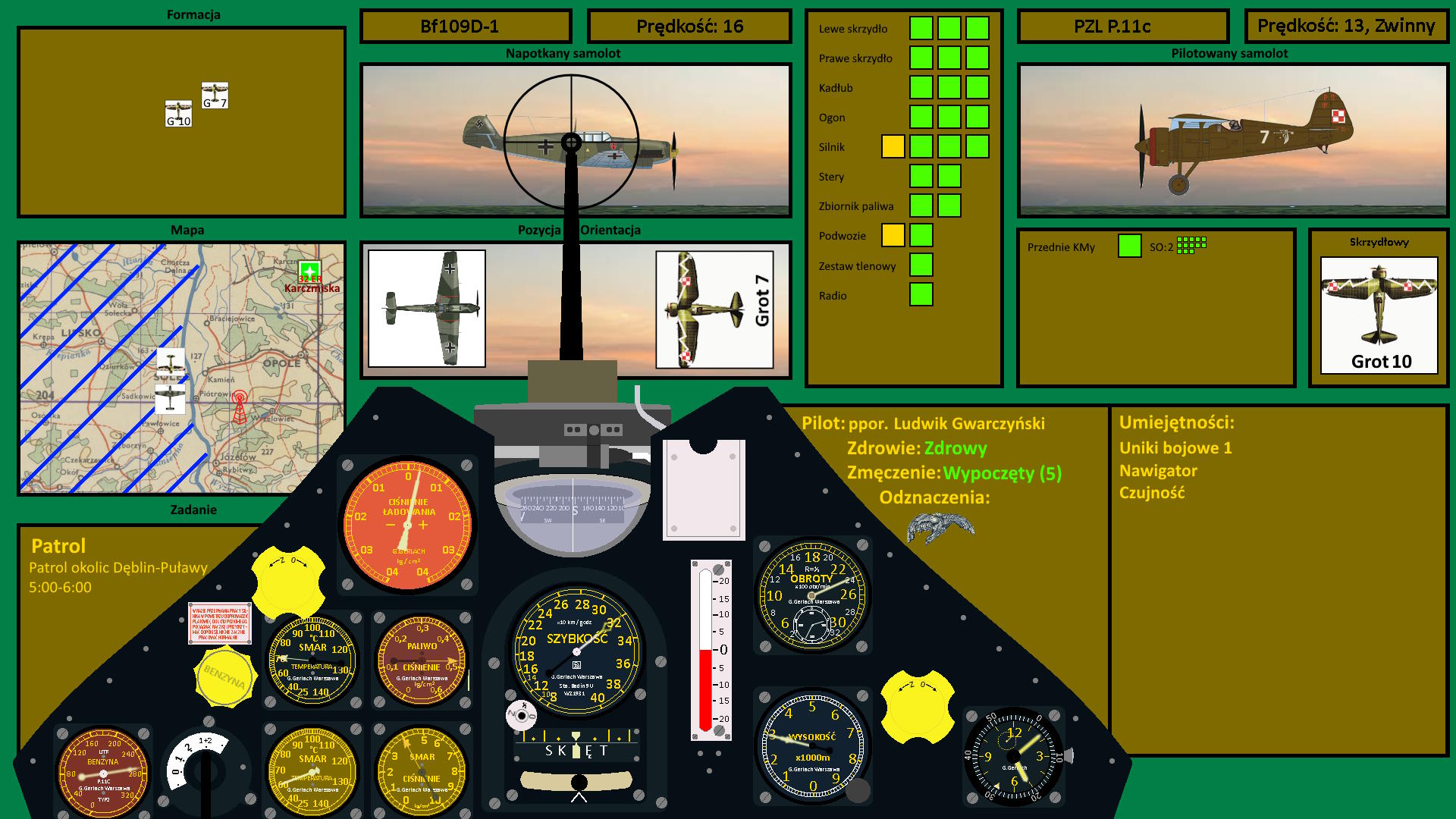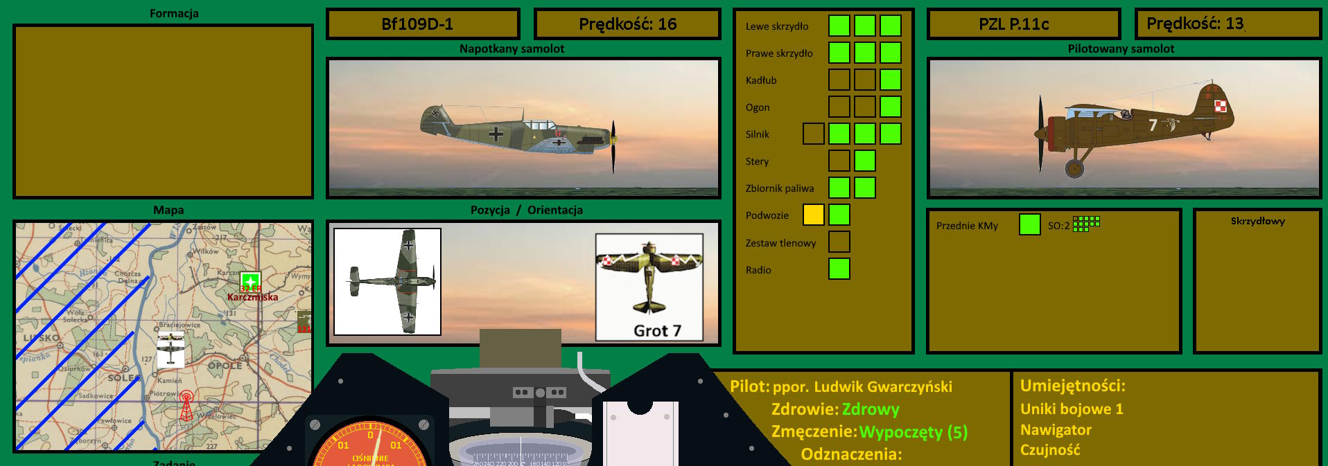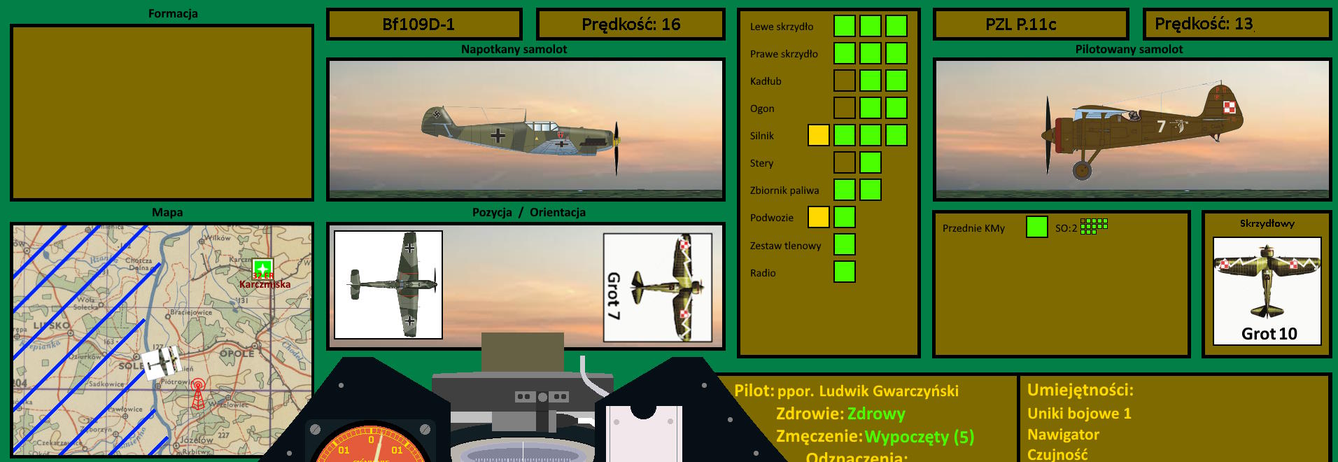 Samolot niemiecki może atakować samolot polski lub może umożliwić atak skrzydłowemu.