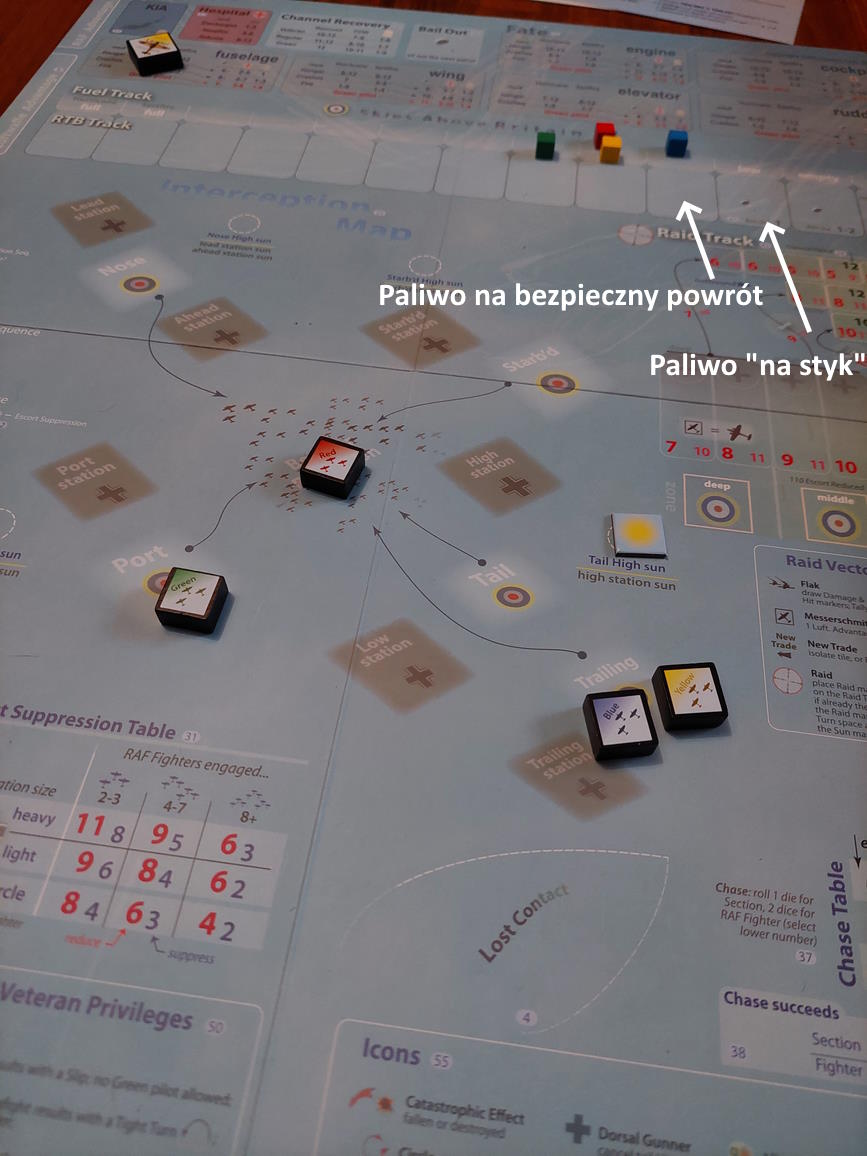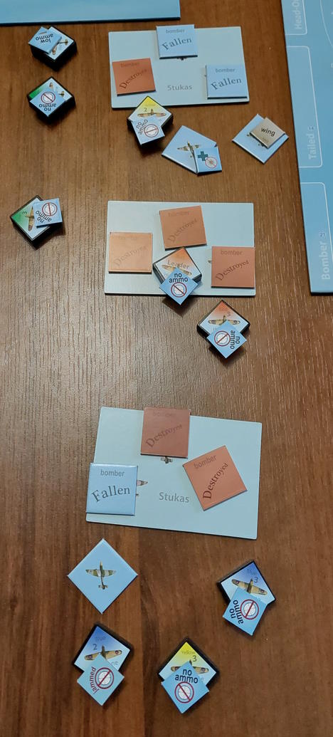 Tymczasem Niebieski 2 walczył z niskim poziomem paliwa, jak i zaciętymi karabinami. Udało mu się jednak pokonać problem i dopaść jeszcze jednego sztukasa, zanim musiał wracać do domu... dolatując do bazy na oparach, z krztuszącym się silnikiem....