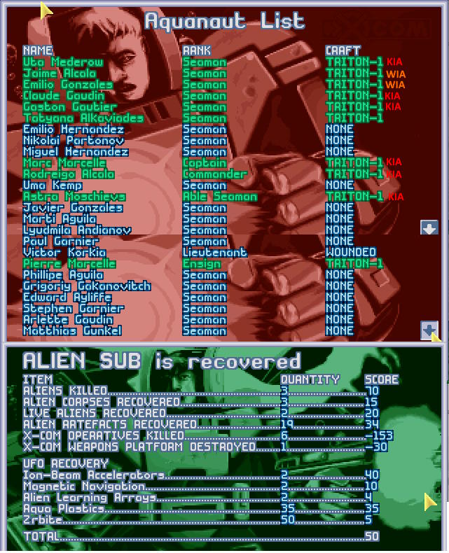 Tym razem nie były to jednak tylko straty, a fakt, że 26 najlepszych aquanatów wsiadało właśnie na pokład Lewiatana, aby wyruszyć w najważniejszą misję X-COM.
