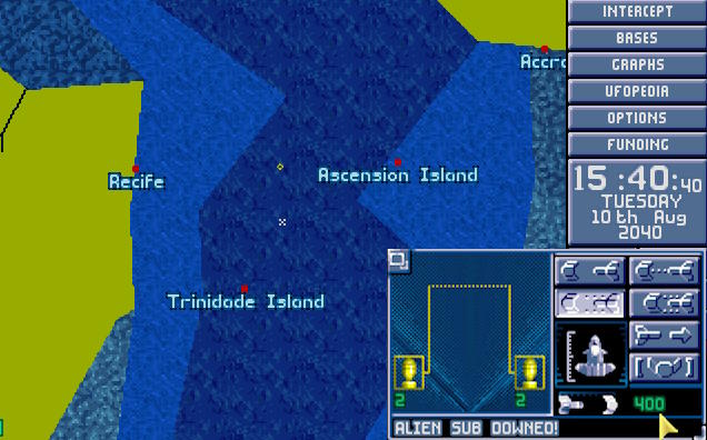 USO szczęśliwie kierowało się w pobliże bazy X-COM South 1 i gdy tylko zwolniło, Barracuda 08 dopadła obcych, celną salwą torped D.U.P. zapewniając kapitanowi miejsce wśród podwodnych asów.