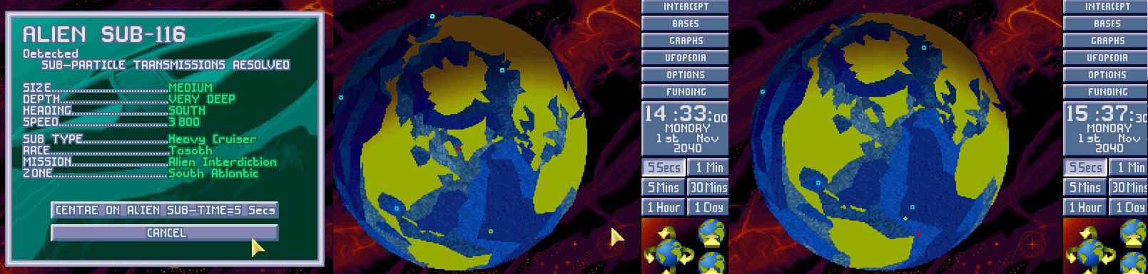 Sensory bazy X-COM wykryły USO, gdy to wynurzało się przy brzegu Hiszpanii, aby skierować się ku Afryce. Barracuda 01 została wysłana w kierunku celu.