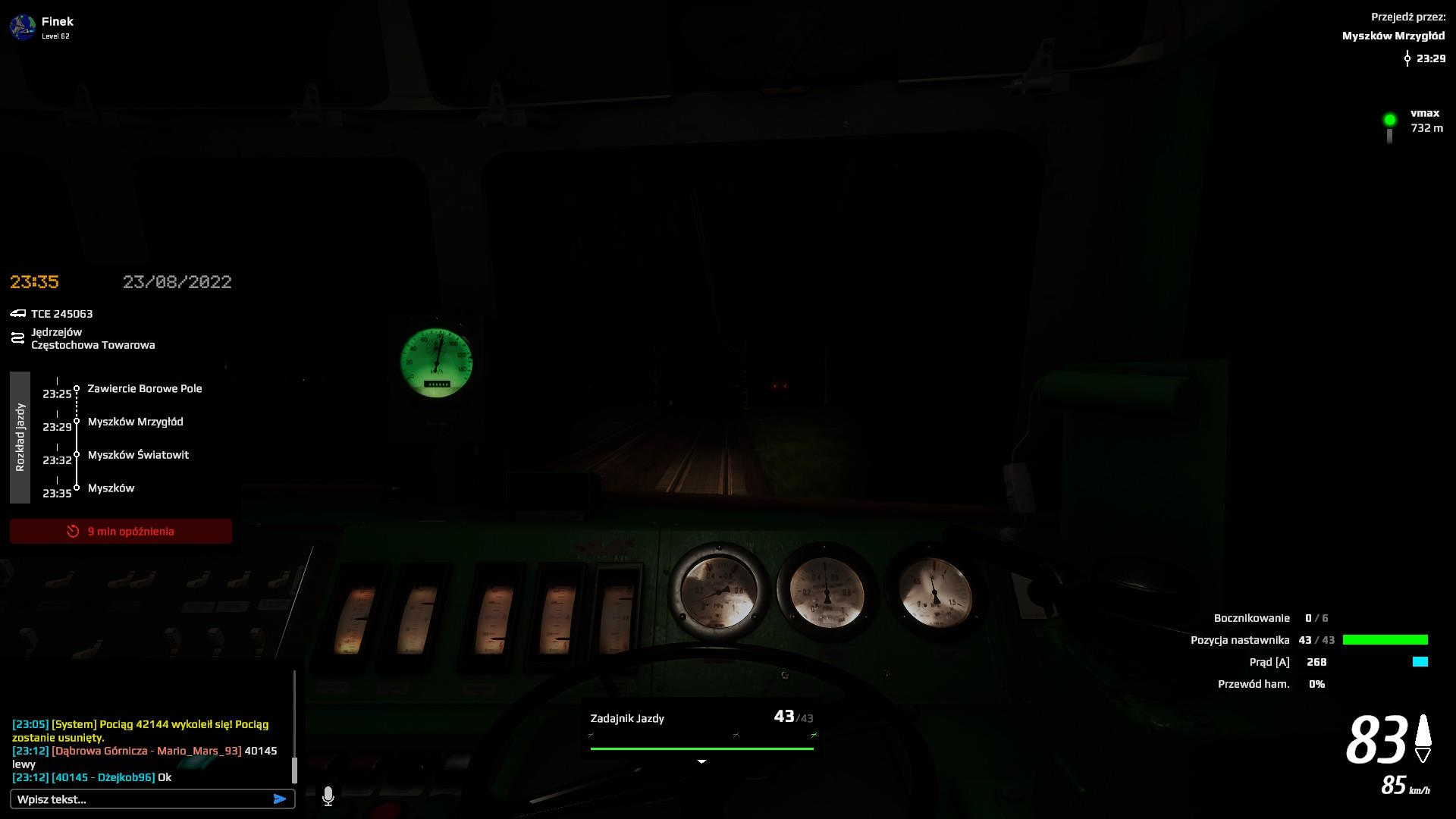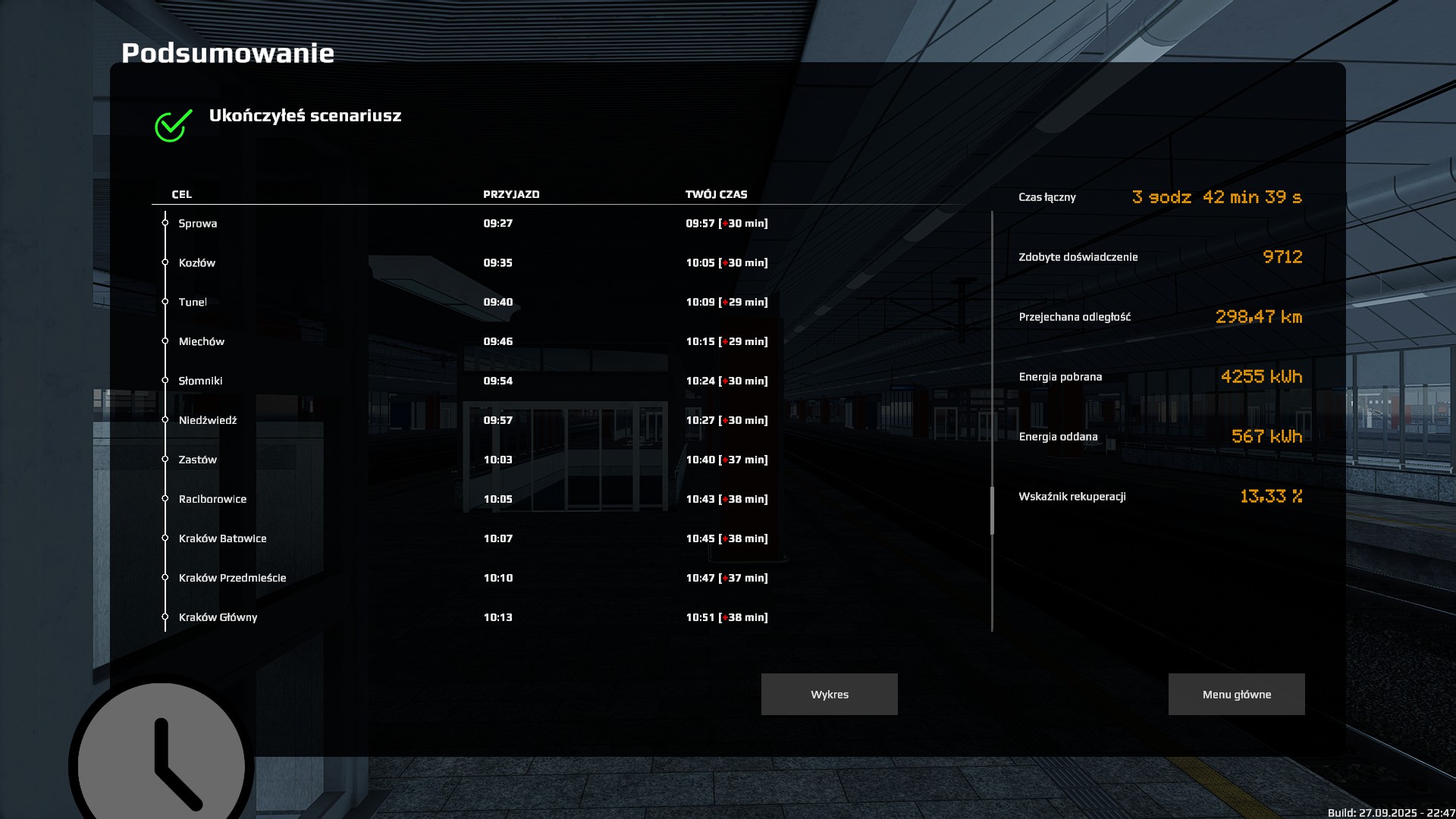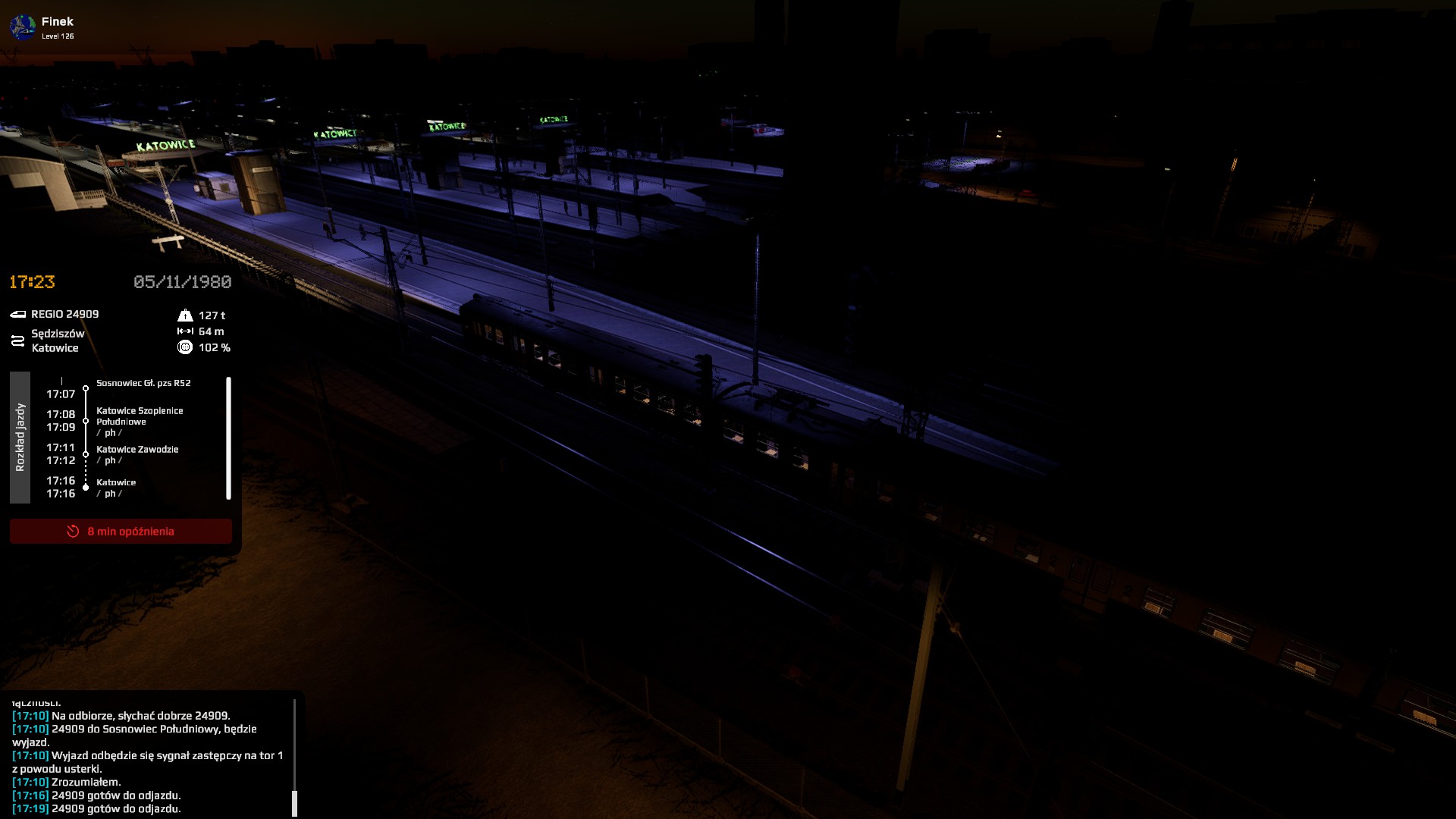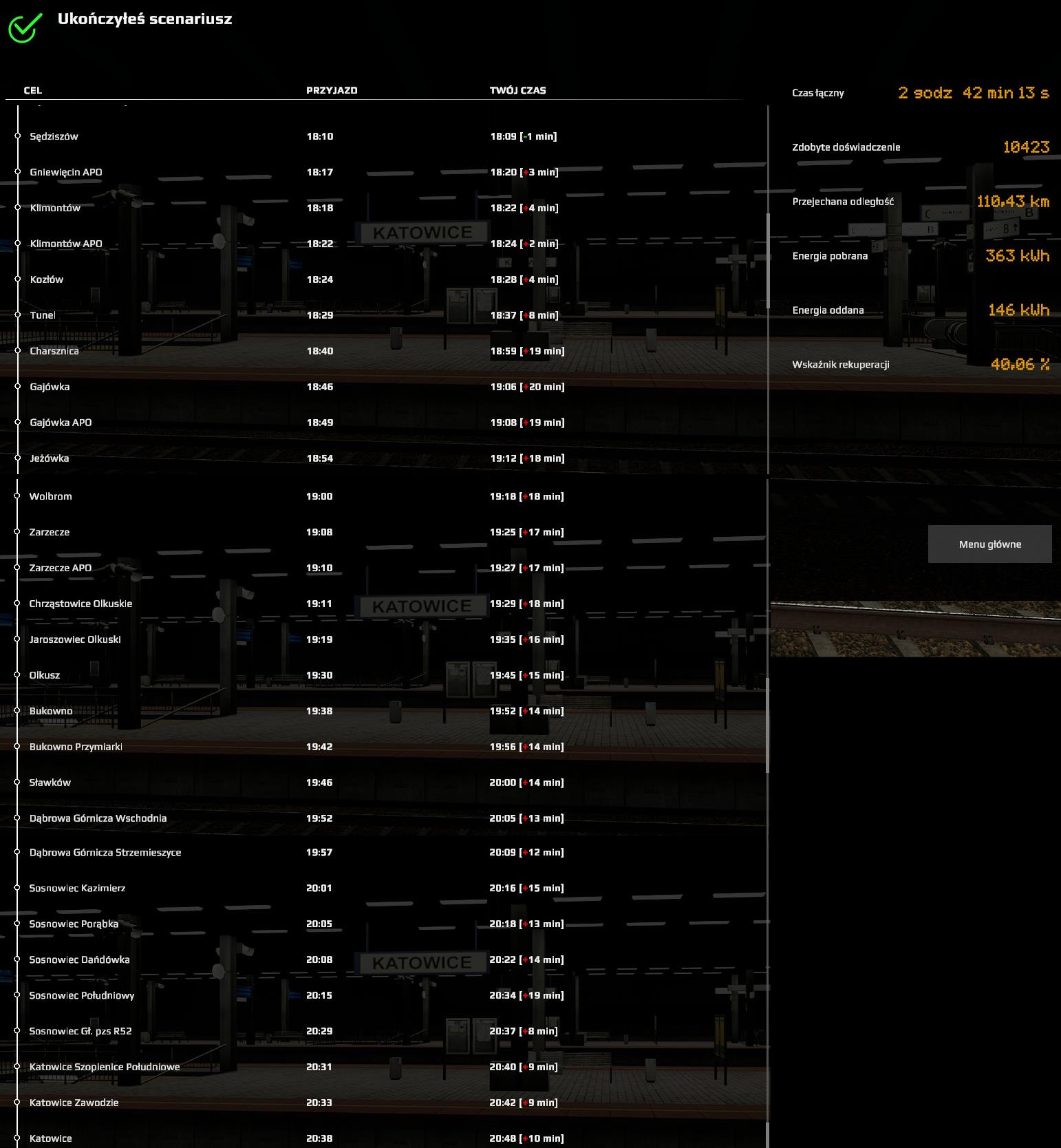 I dotarłem do końca z 38 minutami opóźnienia (a wyjazd z 33 minutami). Liczyłem na jeszcze osiągnięcie "Kiedyś dojedzie"...Ale go nie ma... Czyżby musiał to być serwer z większą liczbą graczy? Ale już raz myślałem, że to mam... Czyżby to musiał być scenariusz singlowy?