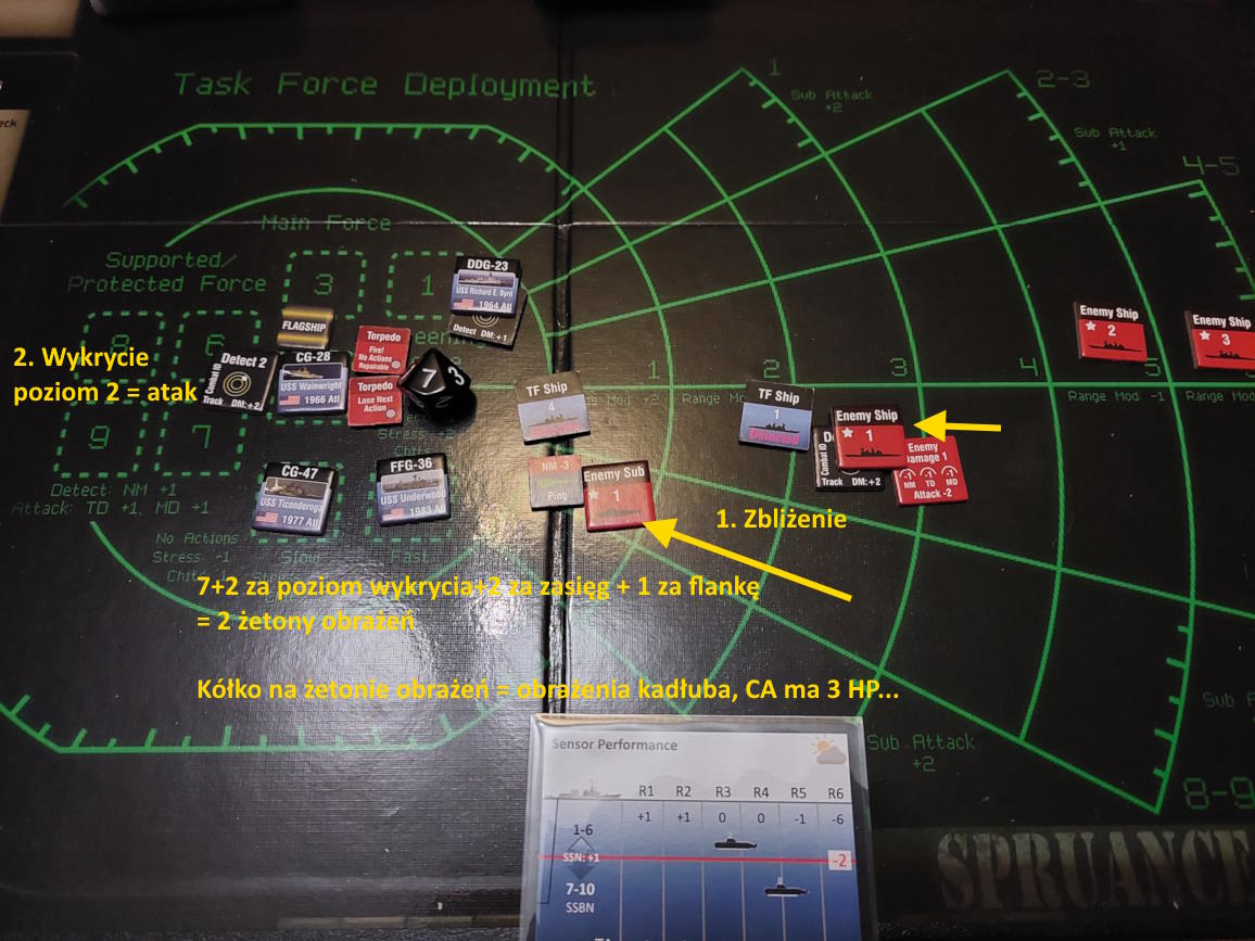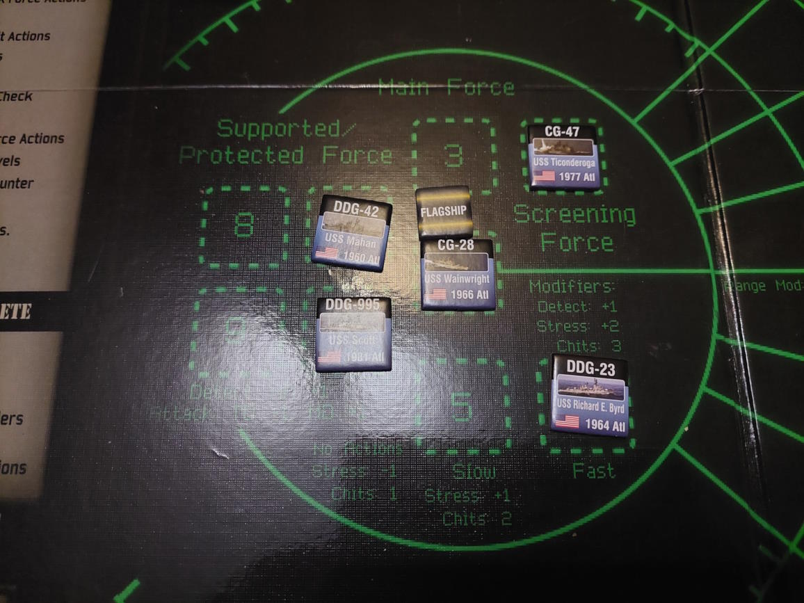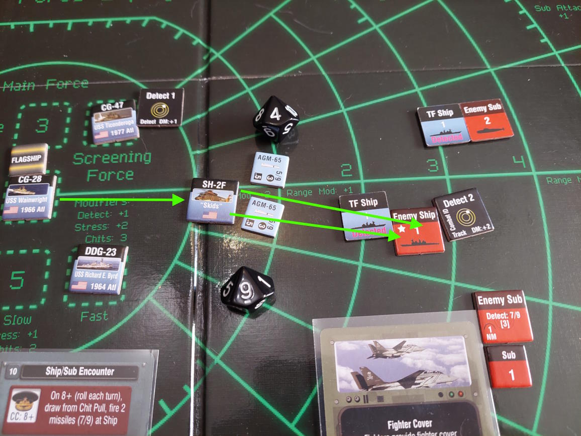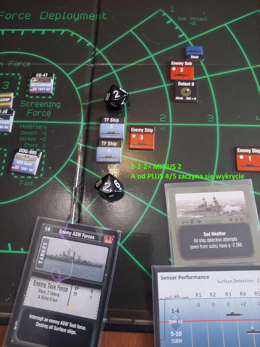 Okazał się to najgorszy pomysł na jaki wpadł kapitan. USS Ticonderoga wykrył okręt podwodny i wspierając się sonarem aktywnym uzyskaliśmy dokładny namiar na okręt podwodny klasy Foxtrot podchodzący pod nasz zespół. Mieliśmy jeszcze sporo torped i USS Scott prowadził zmasowany atak na foxtrota, zatapiając jednostkę.