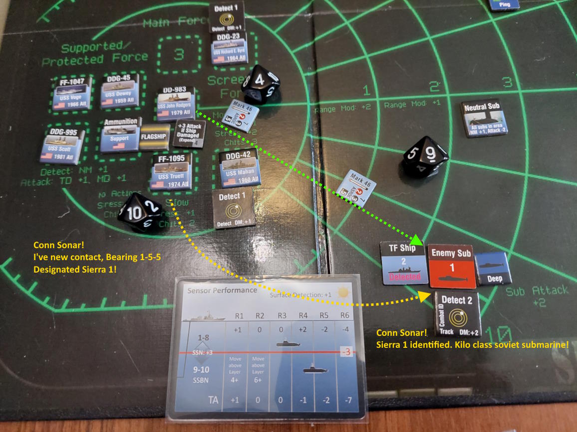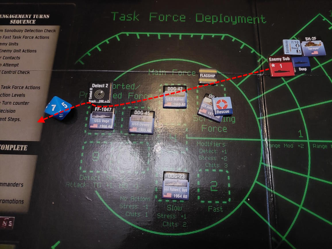 Gdy zbliżyliśmy się do spodziewanej pozycji konwoju, sonar na USS Valdez wykrył zbliżający się kontakt podwodny. Nie mając informacje o sojusznikach, odpowiedź mogła być tylko jedna: Wróg