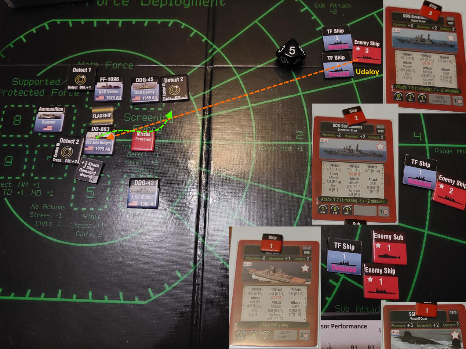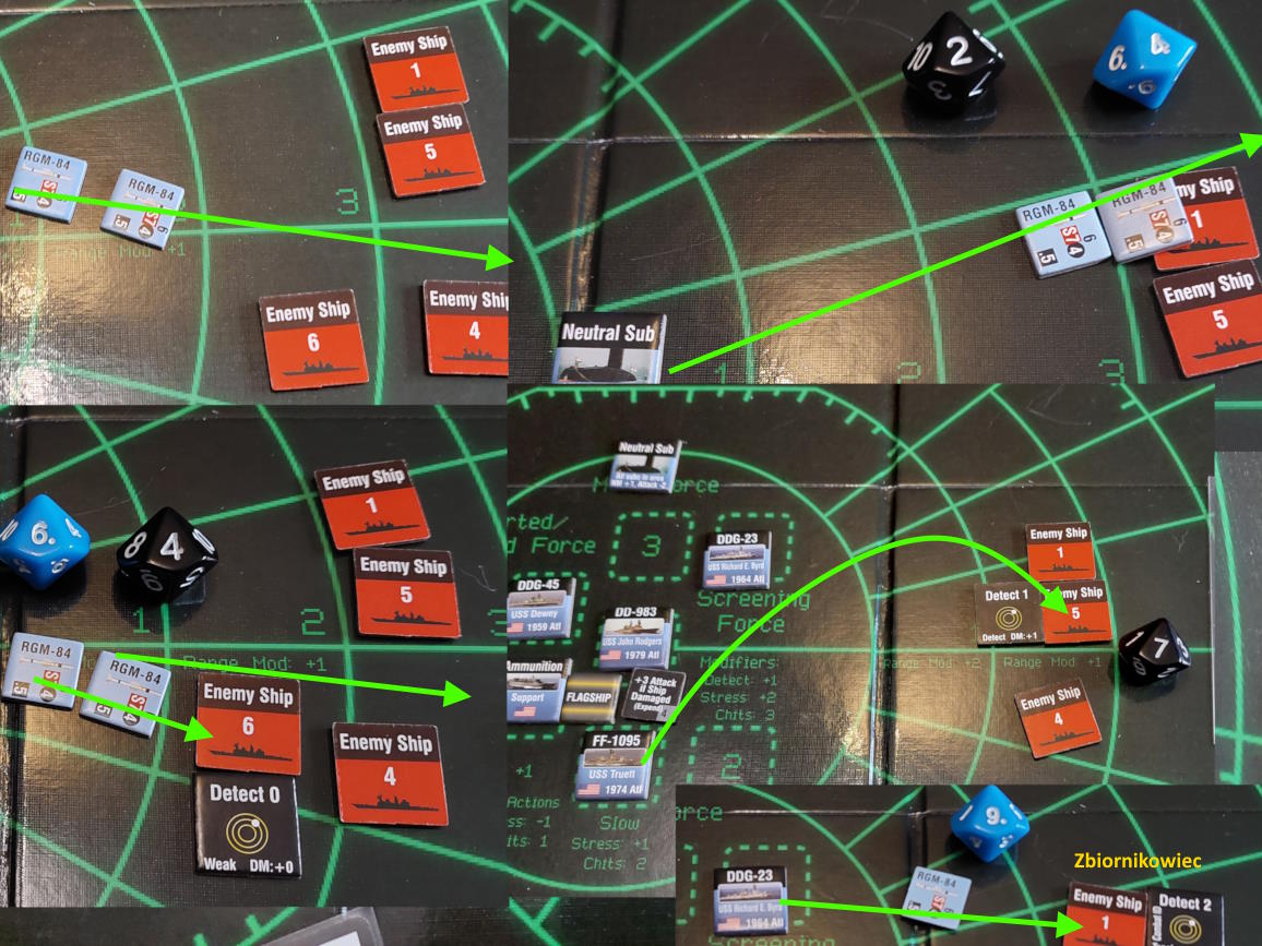 Mając coraz lepszy namiar na Admirała Lobova udało się nam go wreszcie posłać na dno Harpoonami, a uzyskawszy kontakt z okrętem z kierunku ataku błędnie uznałem, że to musi być Mińsk i posłaliśmy w jego stronę połowę Tomahawków, jak się potem okazało w ten sposób wyeliminowaliśmy niszczyciel.