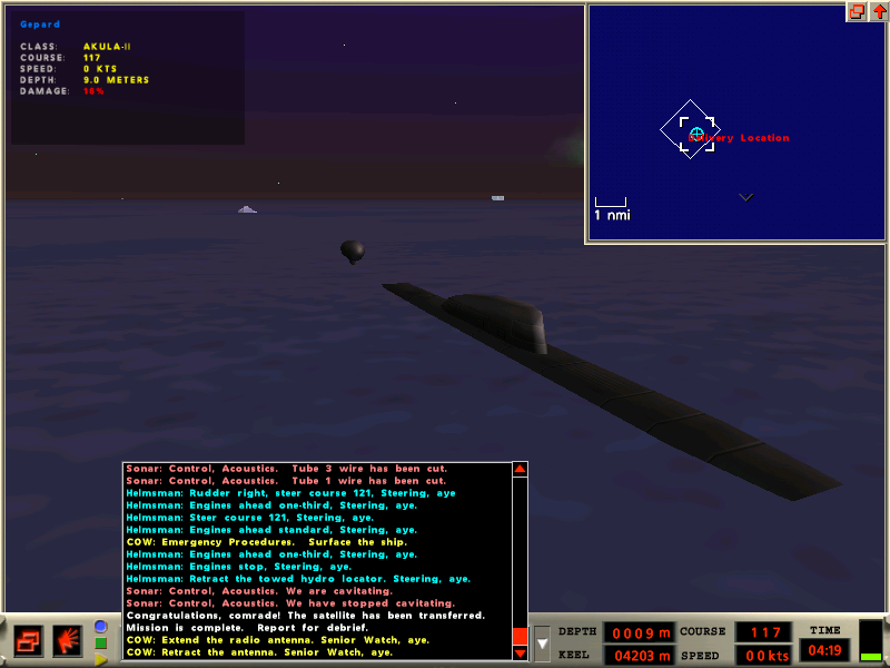 I tak, Amerykanie dorwali się do satelity (USS Passadena), a Gepard Finkova i Asheville zalegli na zimnym dnie.... A Finek musiał powtarzać misję...