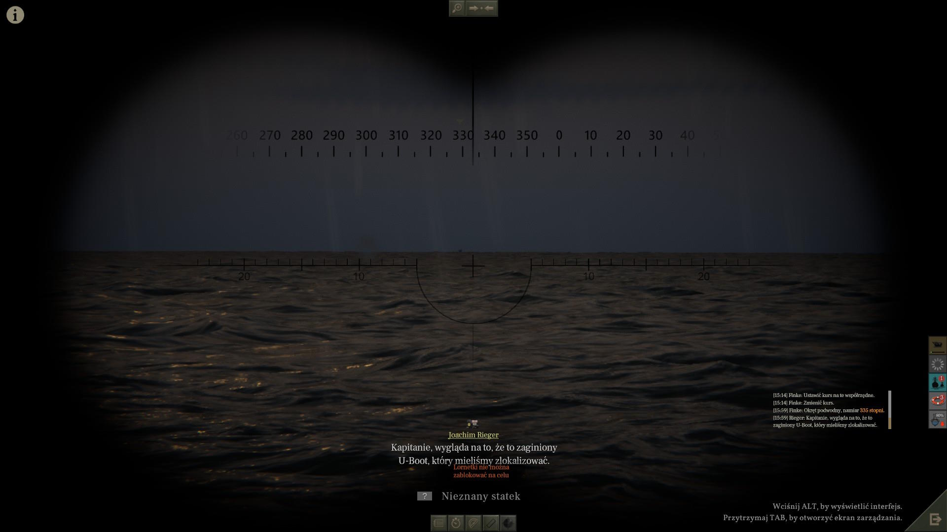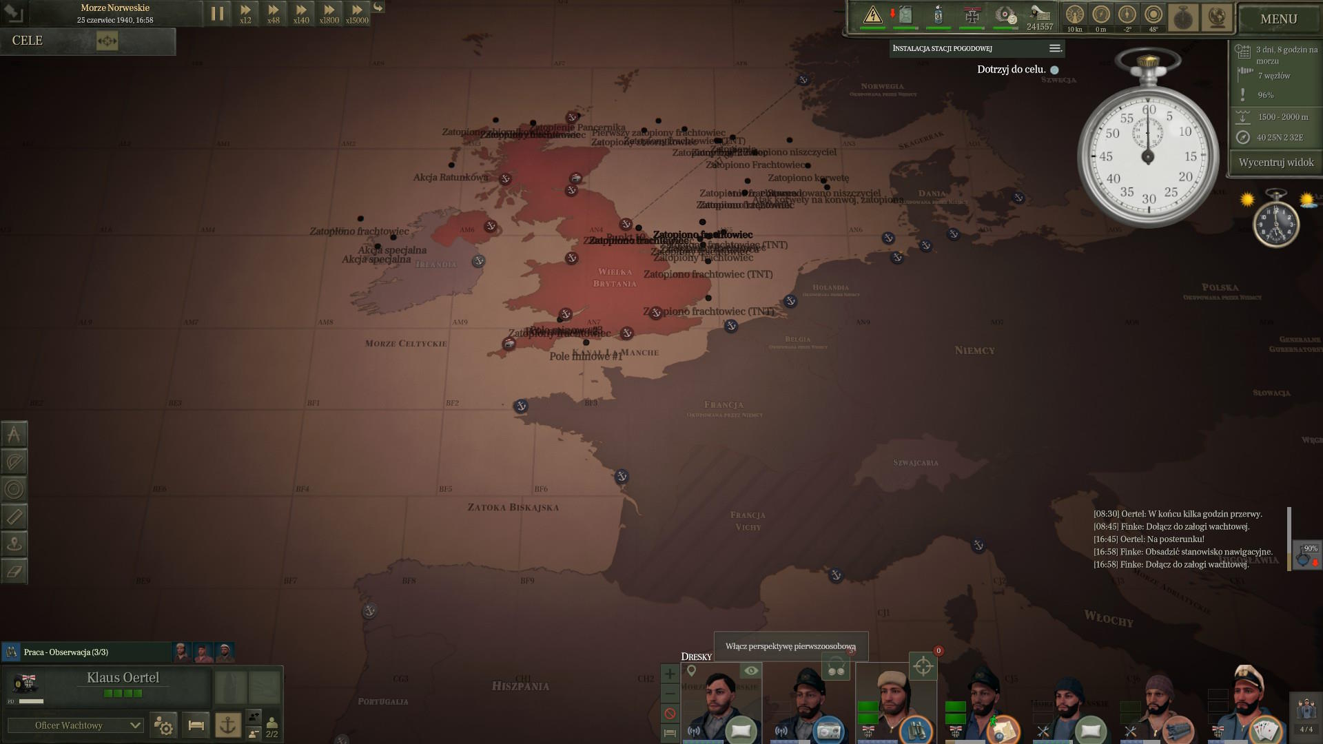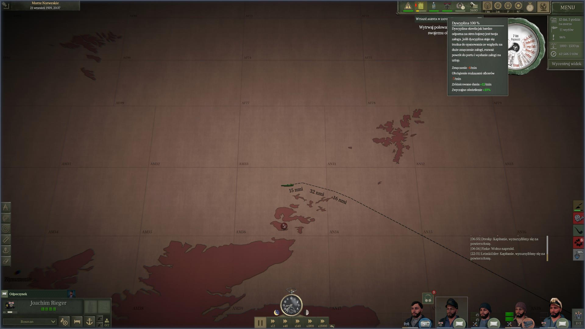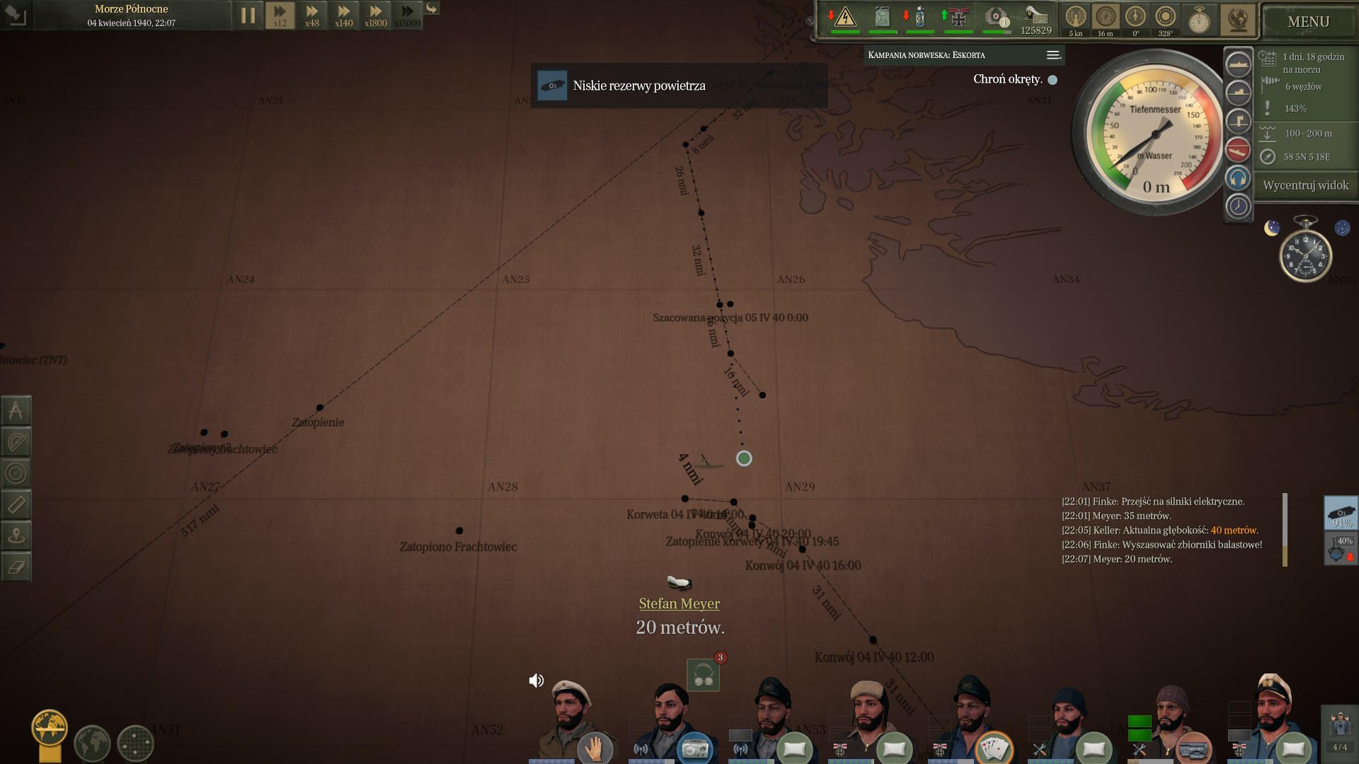 Przez większość dnia płynęliśmy zanurzeni. Naliczyliśmy co najmniej 5 polujących niszczycieli i 10 korwet. Wydawało się, że są wszędzie. Dopiero noc przyniosła nam spokój