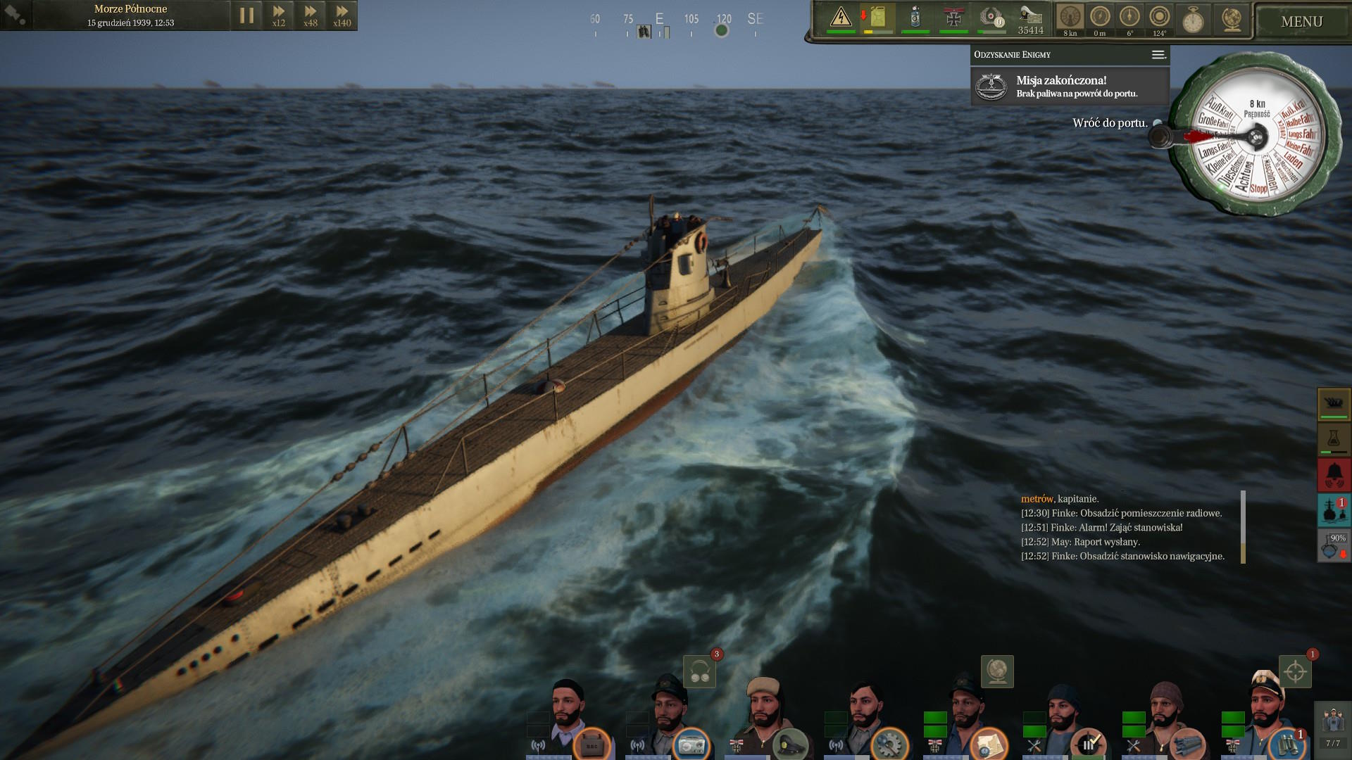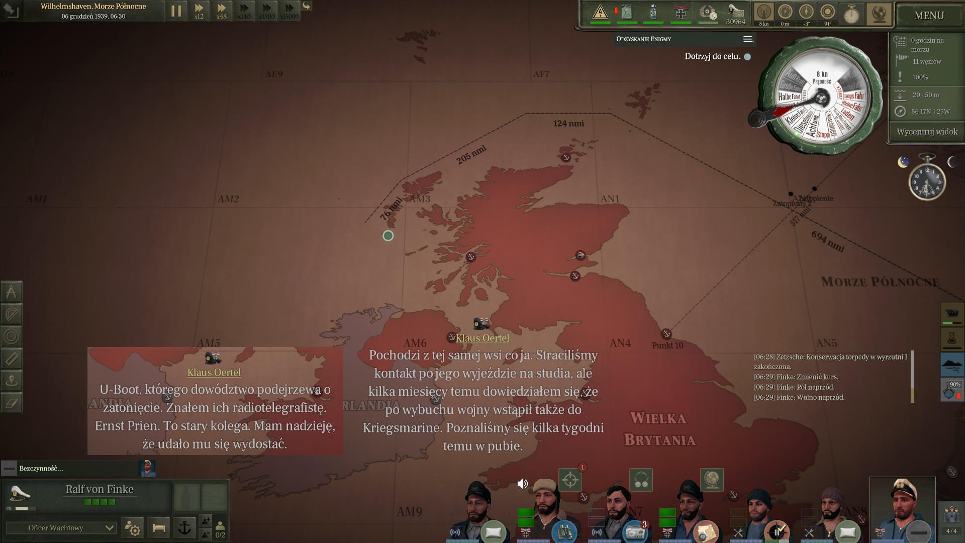 Już zacząłem planować i liczyć ile paliwa możemy zużyć na polowanie na Północno Zachodnim podejściu, gdy nadeszła wiadomość z rozkazami. Wróg wykrył naszą misję i rozpoczął polowanie. Miałem natychmiast wracać do portu