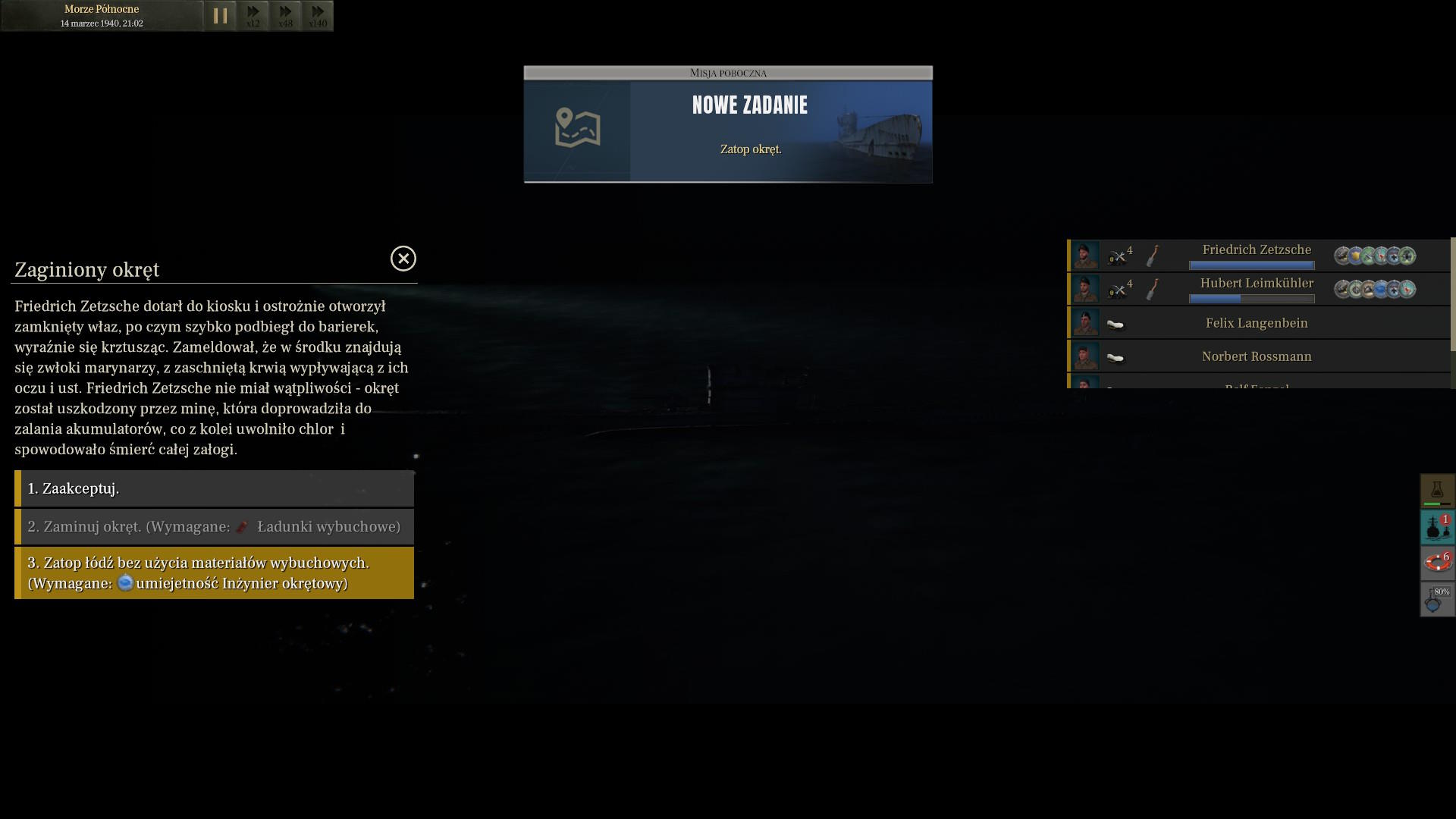Jest 6 sierpnia 1940 roku. Odkąd 31 lipca opuściliśmy Wilhelmshaven kierujemy się coraz dalej na północ. Nawet dowództwo nie jest pewne, czy na pewno to był dobry pomysł. Zapytali nas o stan paliwa. Chwilowo wygląda to dobrze. Pokonaliśmy ponad 1300 mil, zużywając około czwartej części paliwa. Powinno nam go wystarczy do wyspy Hopen i z powrotem