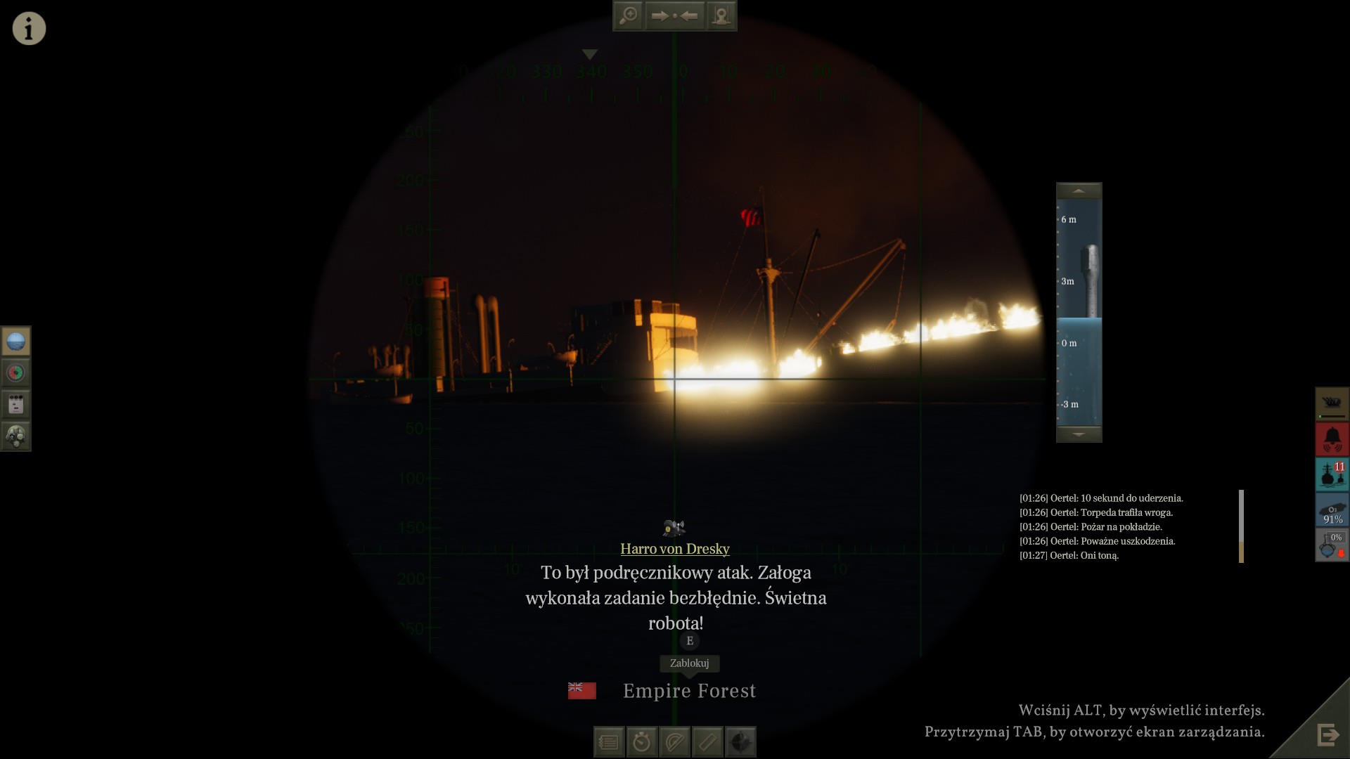 Aby wreszcie o 21:20 zaatakować cel. Wystrzelono do niego 3 torpedy