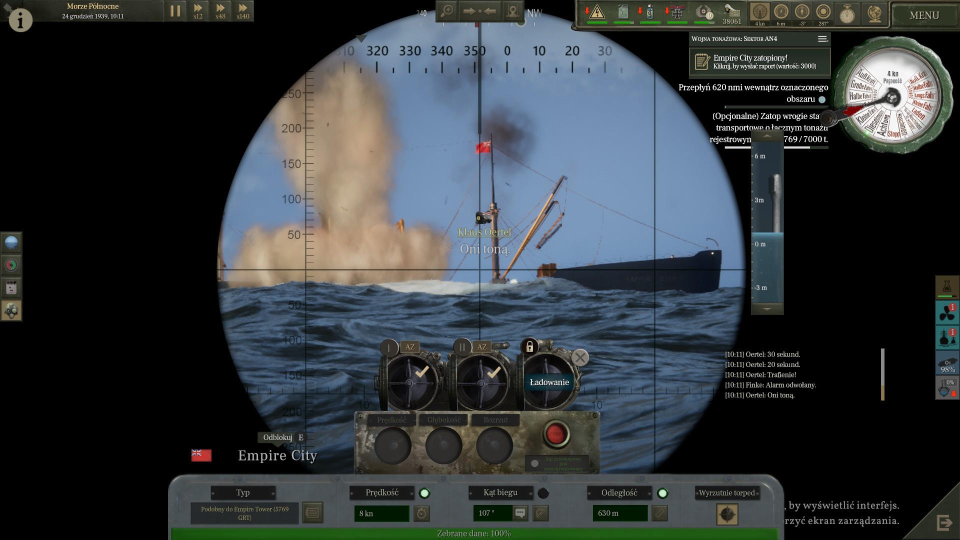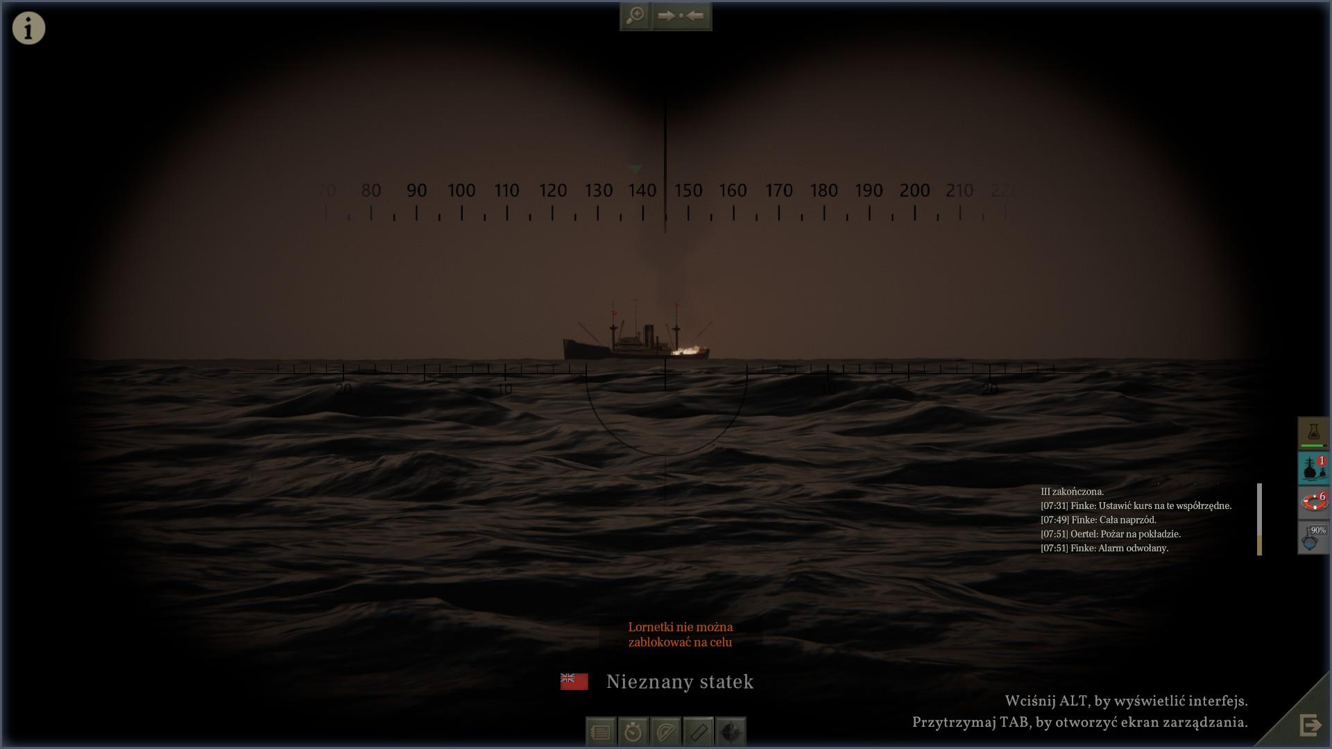 4 września podczas zanurzenia o godzinie 18:00 wykryliśmy śruby na wschodzie. Ruszyliśmy w pościg i przy zachodzącym słońcu dostrzegliśmy dym frachtowca