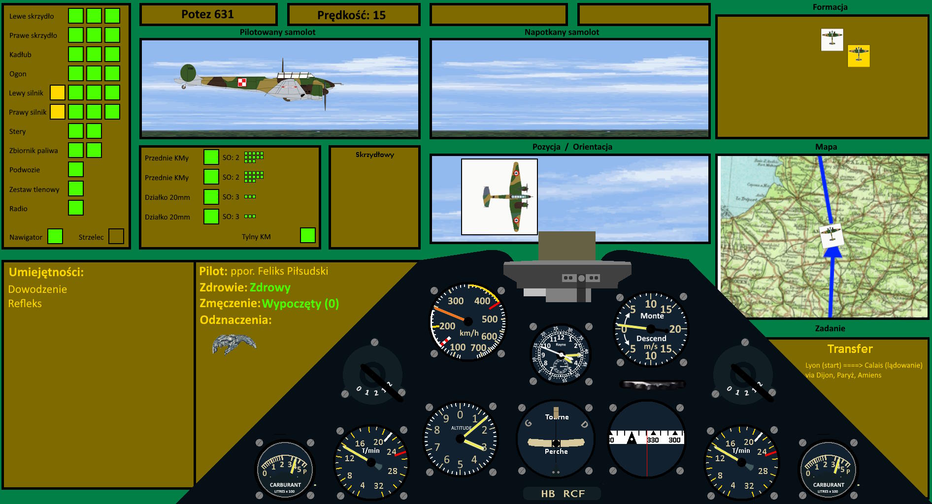 - Zestrzeliłem całkowicie Do17, innego uszkodziłem. Natomiast w mojej ostatniej bitwie 6 września. Gdzie starliśmy się w 2 PZL P11 z 3ema me109. Prawdopodobnie wymieniłem się moją za jedną z ich, ale tego nie pamiętam bo mocno oberwałem, pamiętam że spadał też ich myśliwiec. Długo mi nie było dane powalczyć. A dlaczego się przeniosłem? Od zawsze bardziej podobały mi się ciężkie myśliwce. U Nas testowano Wilka ale nie zdążył wyjść z fazy prototypu.