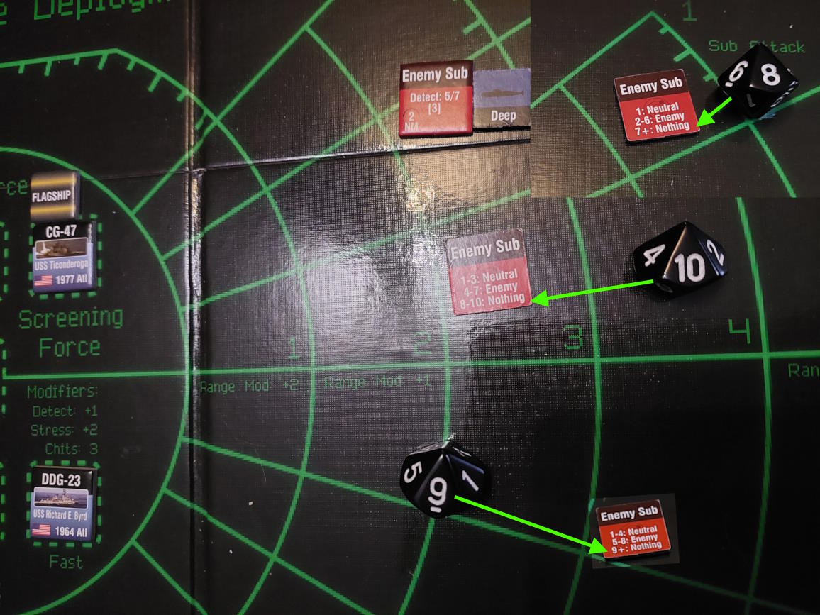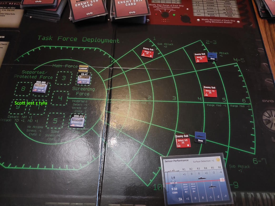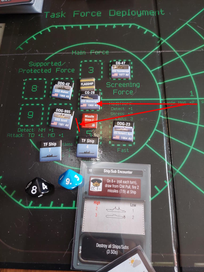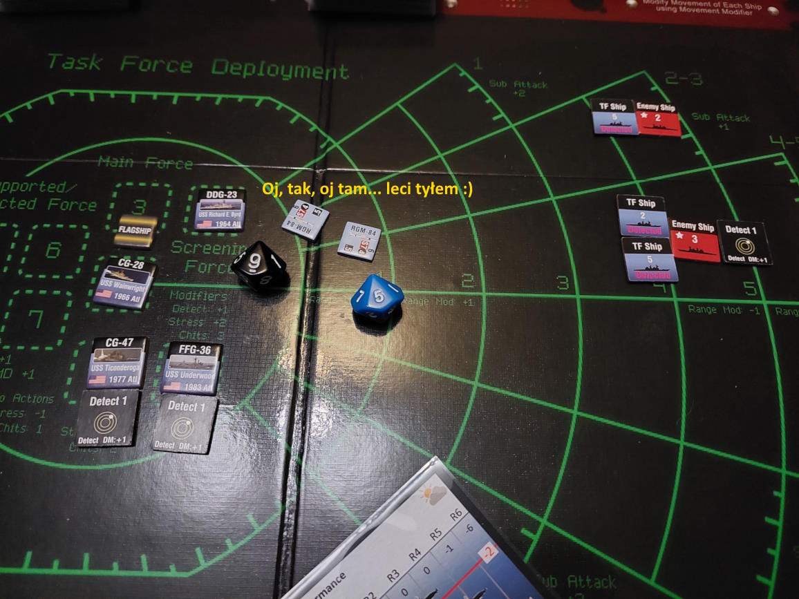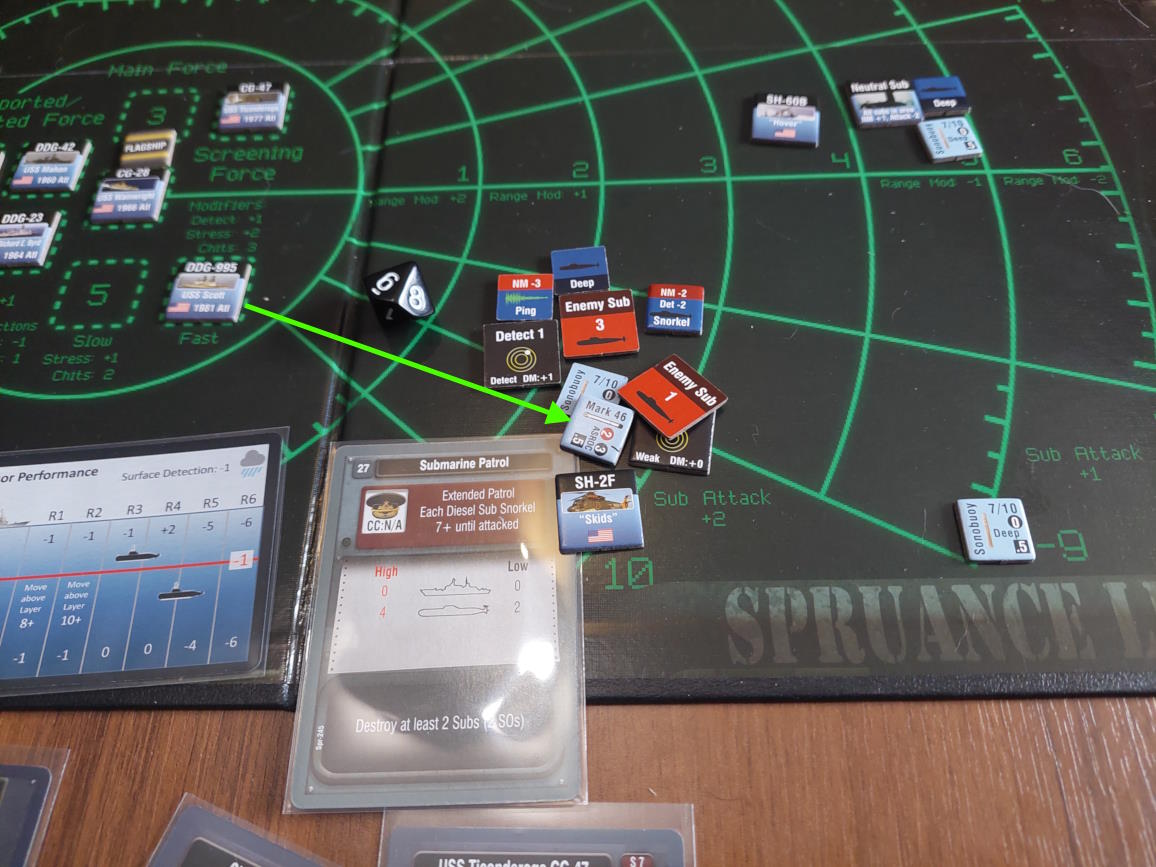 Okazał się to najgorszy pomysł na jaki wpadł kapitan. USS Ticonderoga wykrył okręt podwodny i wspierając się sonarem aktywnym uzyskaliśmy dokładny namiar na okręt podwodny klasy Foxtrot podchodzący pod nasz zespół. Mieliśmy jeszcze sporo torped i USS Scott prowadził zmasowany atak na foxtrota, zatapiając jednostkę.