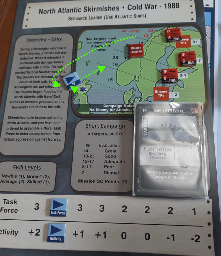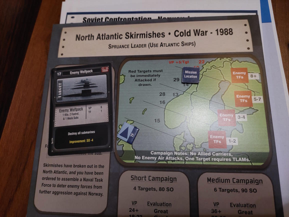 Po odprowadzeniu USS Wainwright do Wielkiej Brytanii, przeniosłem się z dowództwem na pokład USS Ticonderoga. Czekało nas kolejne zadanie. Sowieckie okręty podwodne klasy Kilo i Foxtrot polowały na Norweskie okręty pomiędzy Namos i Bodo, a w okolicy podobno jest też i Akuła.... Dowództwo Floty Atlantyku wysyła nas, aby pozbyć się tych okrętów podwodnych...