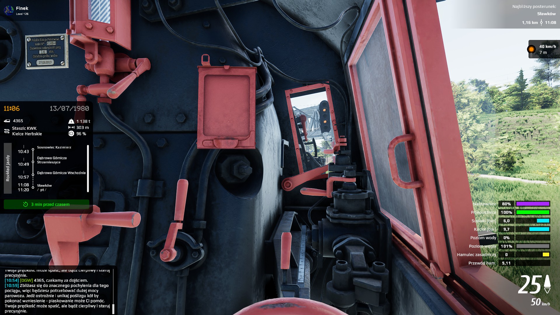 Palacz czy maszynista? Może palacz i eksplozja kotła? Nie... Maszynista... Ja trudny scenariusz (ilość wagonów)? Może średni na początek. Start. Zaczyna się dobrze. Uczą mnie obsługi, są pociągi AI. Zapowiada się dobrze