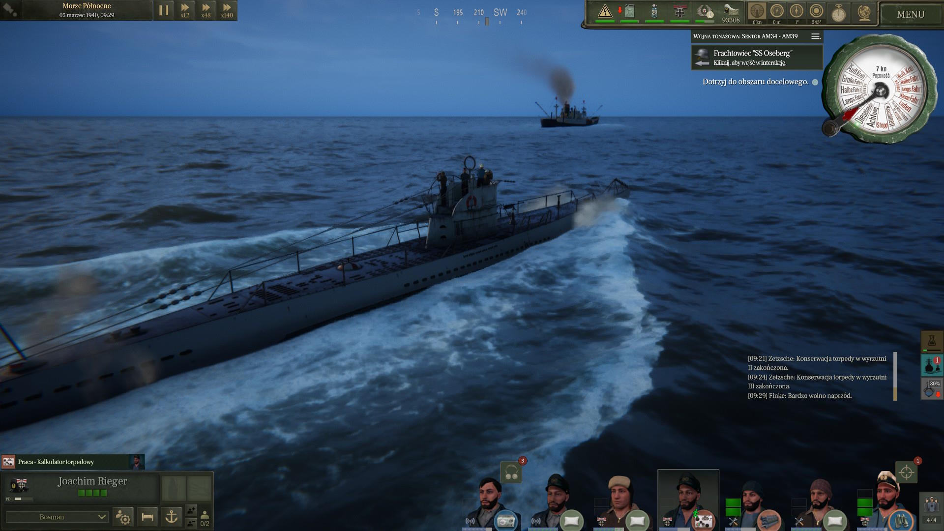 4 września podczas zanurzenia o godzinie 18:00 wykryliśmy śruby na wschodzie. Ruszyliśmy w pościg i przy zachodzącym słońcu dostrzegliśmy dym frachtowca